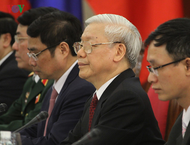| Thay mặt Đảng, Nhà nước và nhân dân Việt Nam, Tổng Bí thư Nguyễn Phú Trọng nhiệt liệt chào mừng Tổng bí thư,Chủ tịch nước Lào Bounnhang Volachith dẫn đầu Đoàn đại biểu cấp cao của Đảng, Nhà nước Lào thăm hữu nghị chính thức Việt Nam; khẳng định chuyến thăm lần này là dấu mốc quan trọng trong quan hệ hai nước Việt Nam - Lào. |