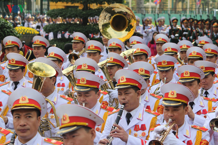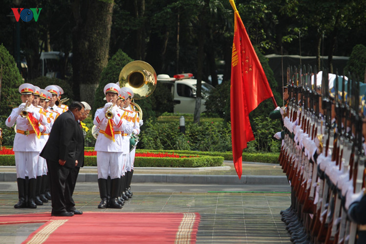 | Tiếp đó, Tổng Bí thư Nguyễn Phú Trọng mời Tổng Bí thư, Chủ tịch nước Lào Bounnhang Volachith duyệt Đội danh dự Quân đội nhân dân Việt Nam. |