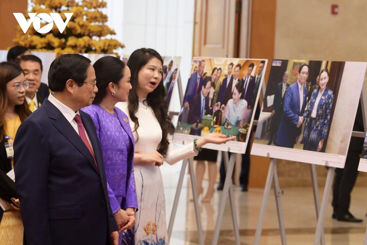 | Hai Thủ tướng tham quan triển lãm ảnh về tình hữu nghị giữa Việt Nam và Thái Lan. |