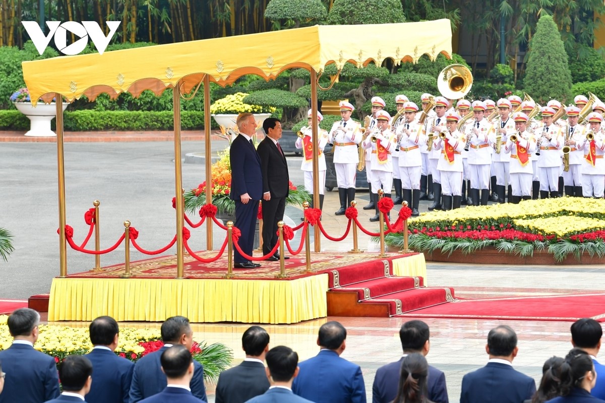 Chủ tịch nước Lương Cường mời Nhà vua Philippe duyệt đội danh dự Quân đội nhân dân Việt Nam. |