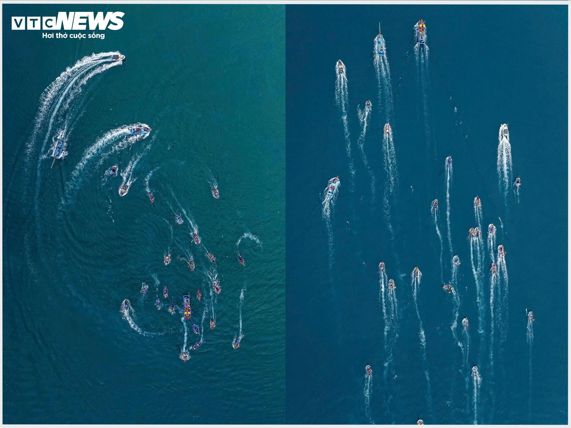 | Lễ tế còn gắn liền với tục rước bài vị thần linh ra biển để “du ngoạn” một vòng, thể hiện sự giao hòa giữa con người và biển cả. Đây là nghi lễ trang trọng, tạo nên không khí thiêng liêng giữa sóng nước. |