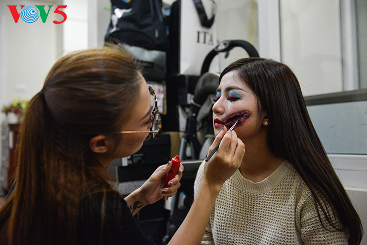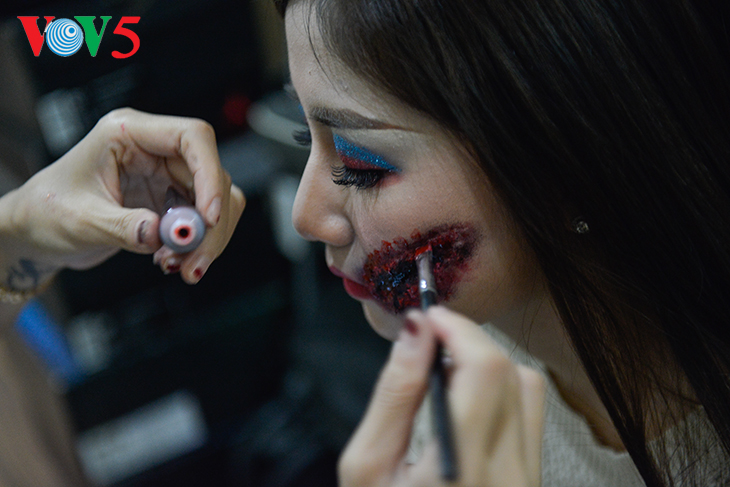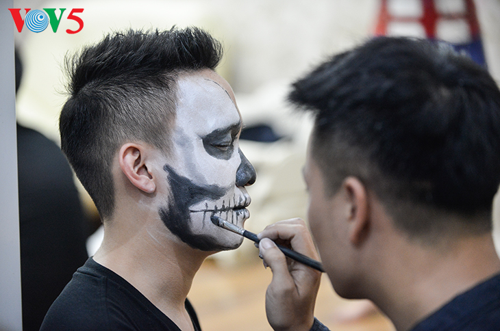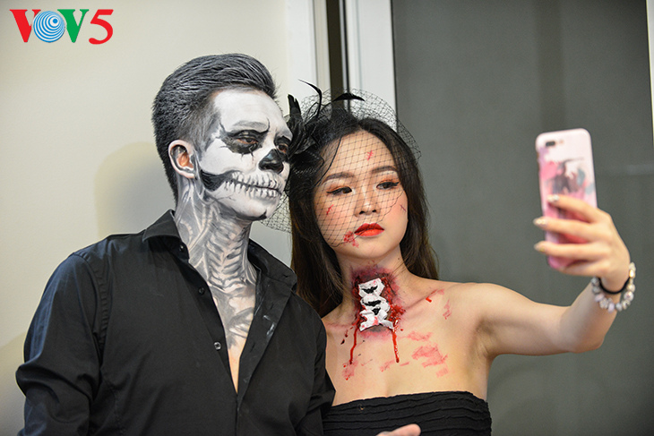 Giới trẻ ở Hà Nội hưởng ướng nhiệt tình cho lễ hội Halloween bằng cách hoá trang cho mình trở nên kinh dị.
