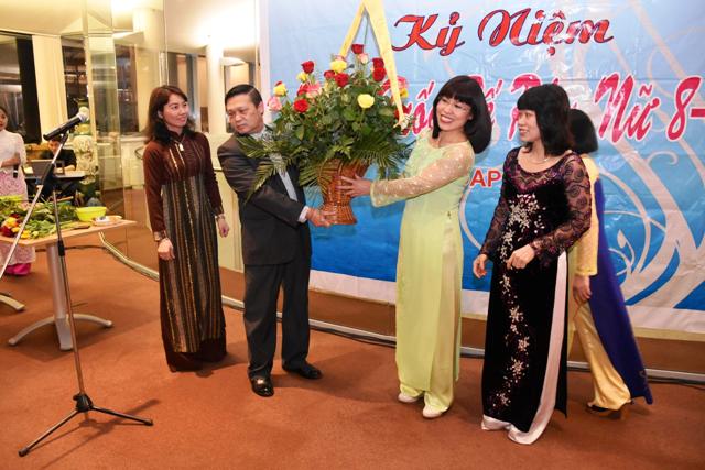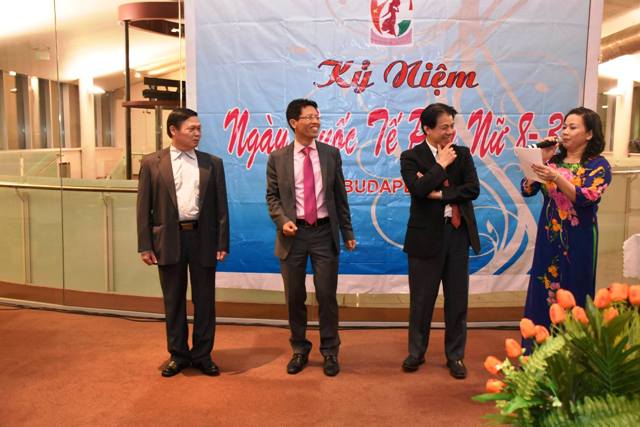 Trong không khí ấm cúng vui vẻ của buổi lễ Tham tán đại sứ quán Việt Nam tại Hungary và Chủ tịch Hiệp Hội người Việt Nam cũng như đại diện các hội đoàn đã chúc mừng chị em nhân ngày Quốc Tế Phụ Nữ.