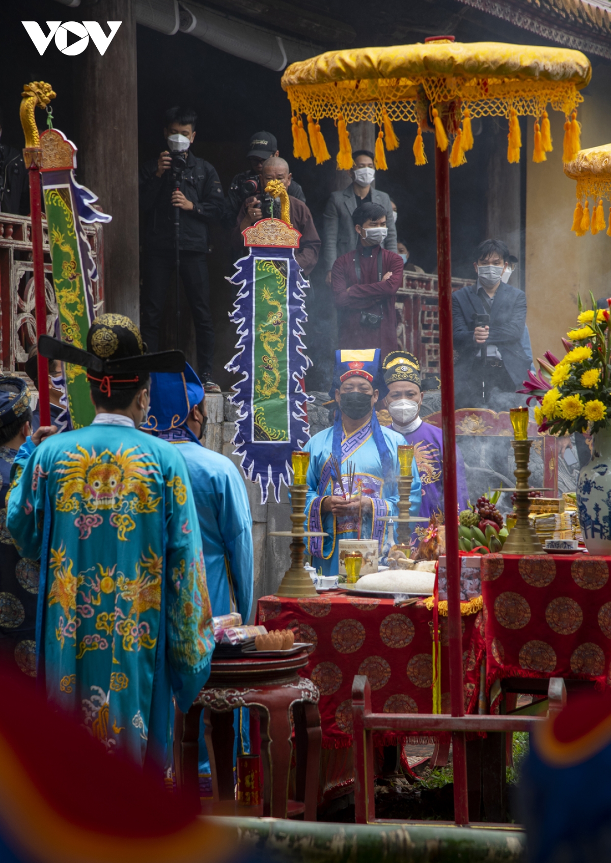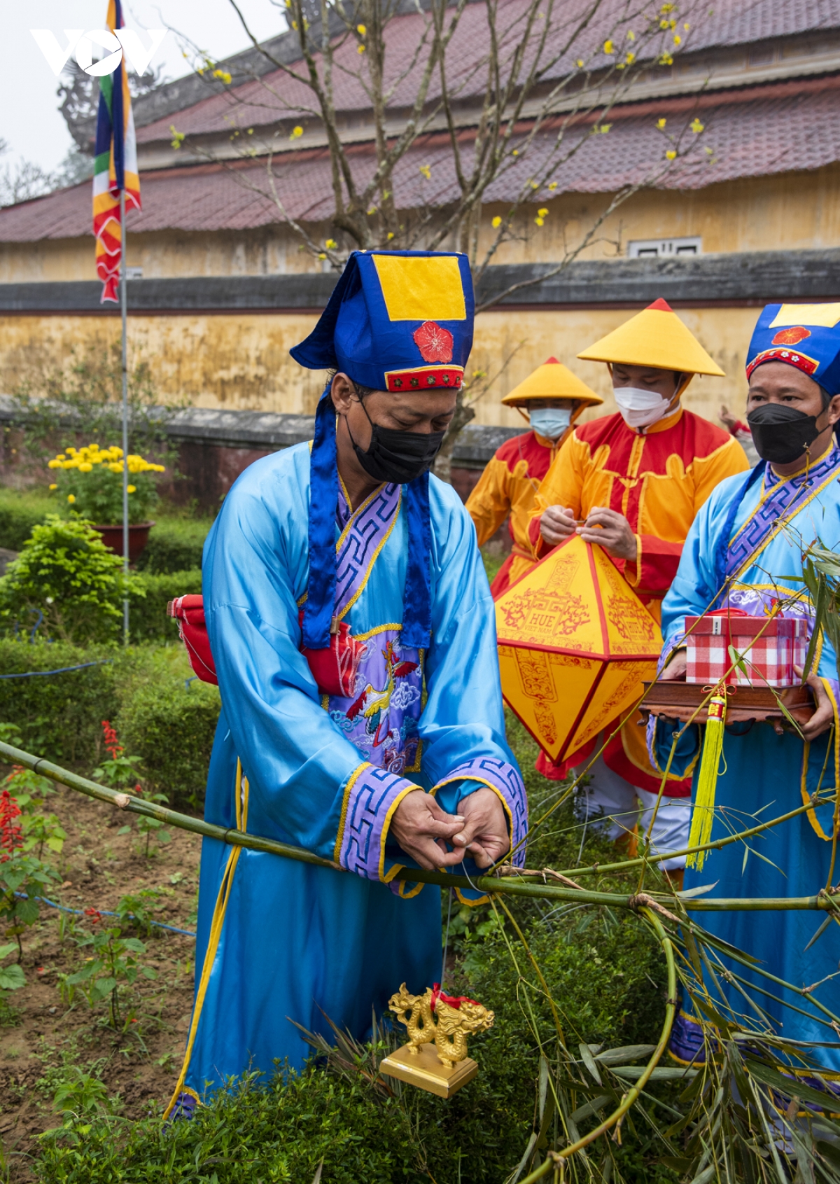 Năm nay do dịch bệnh phức tạp nên phần dựng nêu chỉ làm ở Triệu tổ miếu và Thế miếu, mọi người đều tuân thủ 5K.
