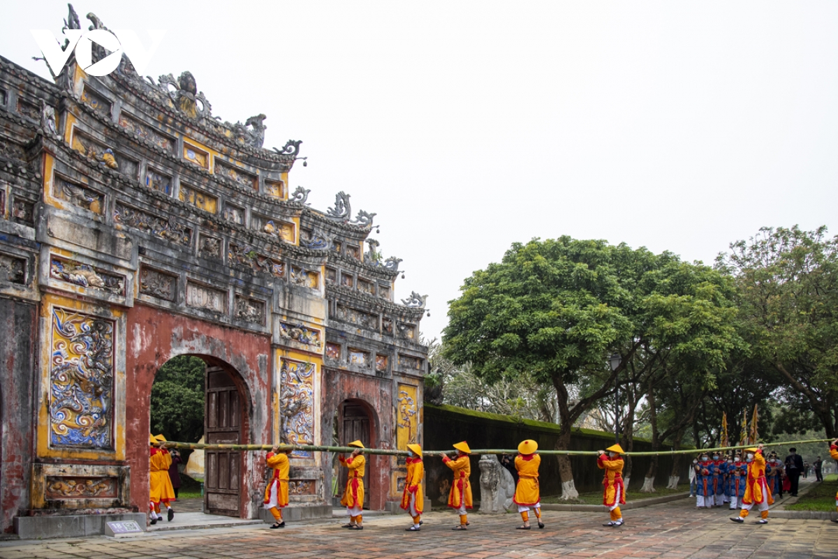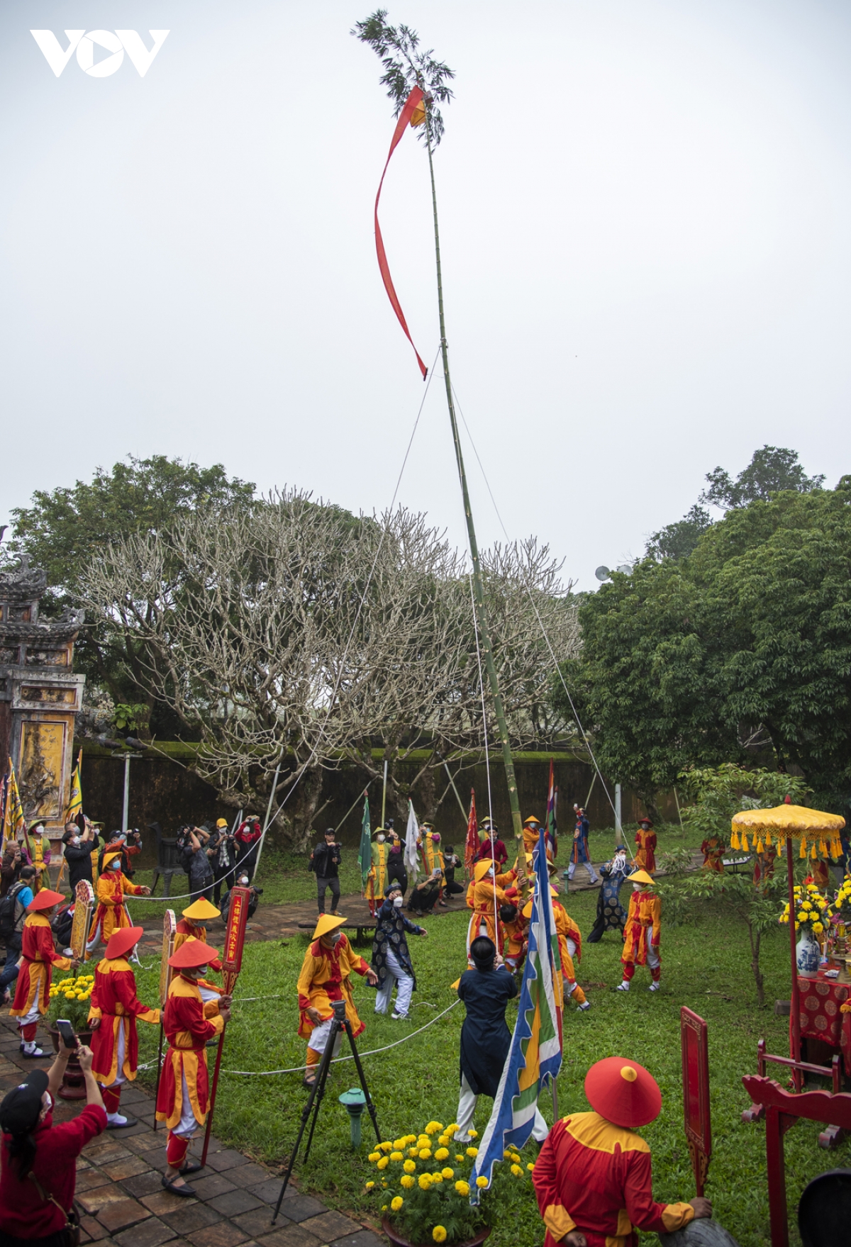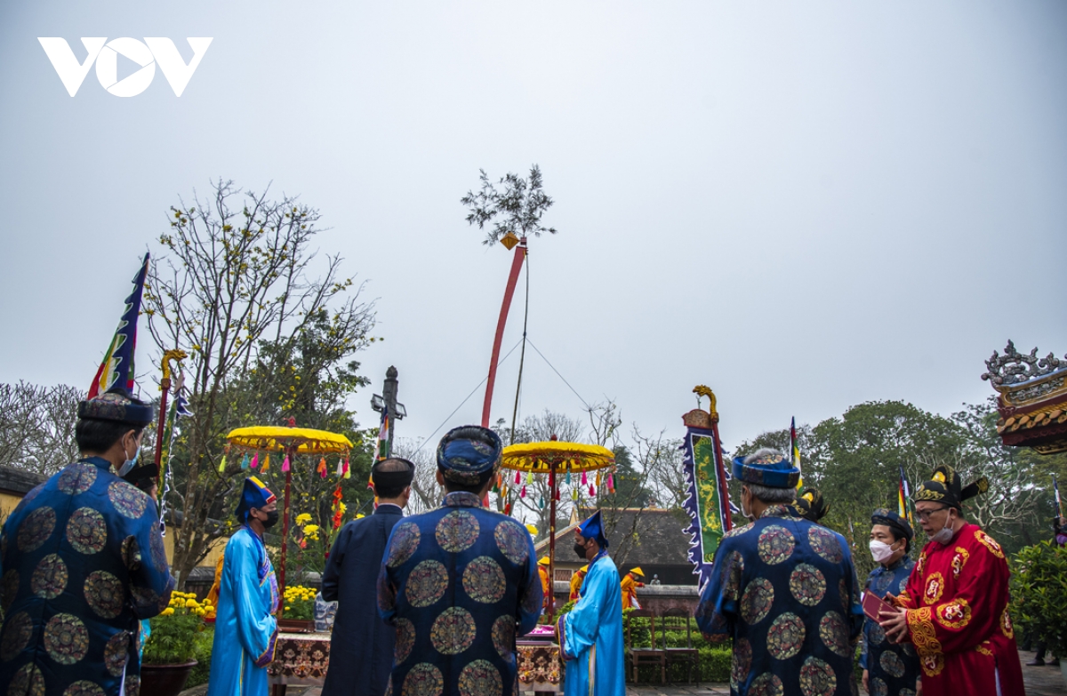 (VOV5) -Trong đời sống cung đình ở Huế, trước ngày Tết người xưa thường làm lễ thưởng tiêu - tức dựng cây nêu để báo hiệu một năm đã qua, ngày Tết đã tới.