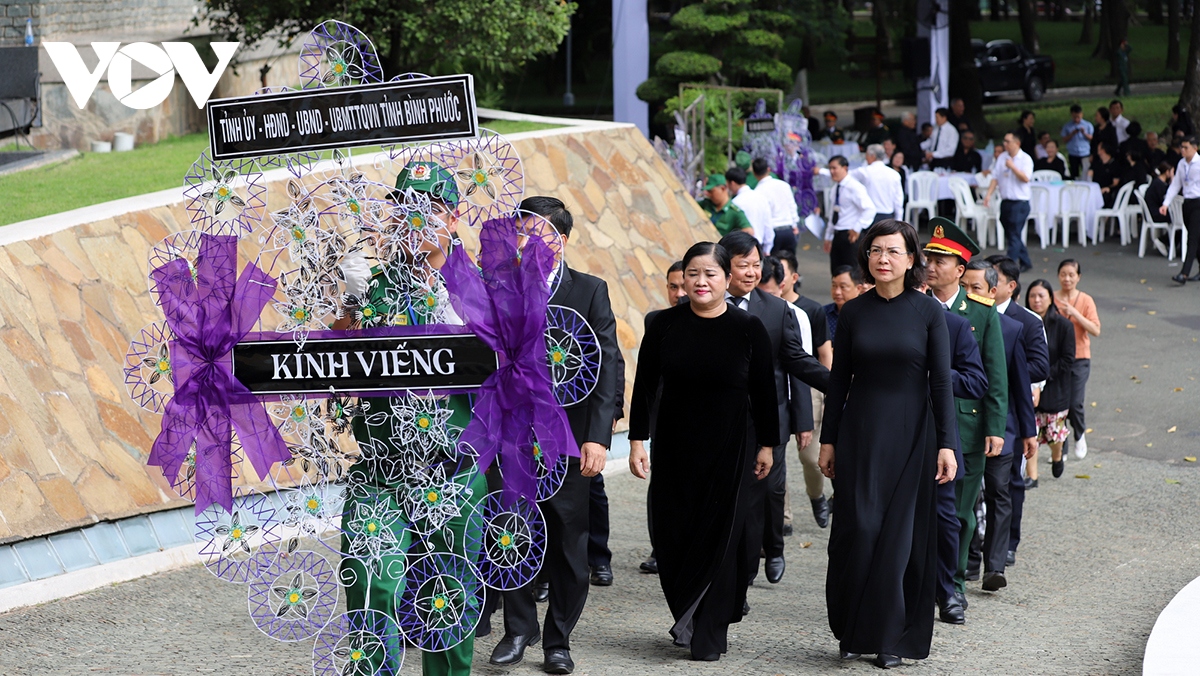 Vào viếng đầu tiên tại Hội trường Thống Nhất là Đoàn đại biểu Thành ủy, Hội đồng nhân dân, Ủy ban nhân dân, Ủy ban Mặt trận Tổ quốc Việt Nam TP. Hồ Chí Minh và các đồng chí lãnh đạo Đảng, Nhà nước nghỉ hưu tại TP. Hồ Chí Minh, các đồng chí nguyên lãnh đạo TP. Hồ Chí Minh. Đoàn do ông Nguyễn Văn Nên, Ủy viên Bộ Chính trị, Bí thư Thành ủy TP. Hồ Chí Minh làm Trưởng đoàn. |