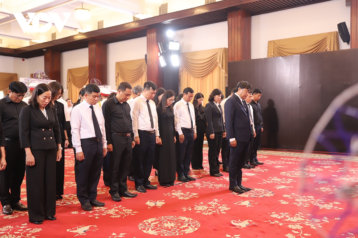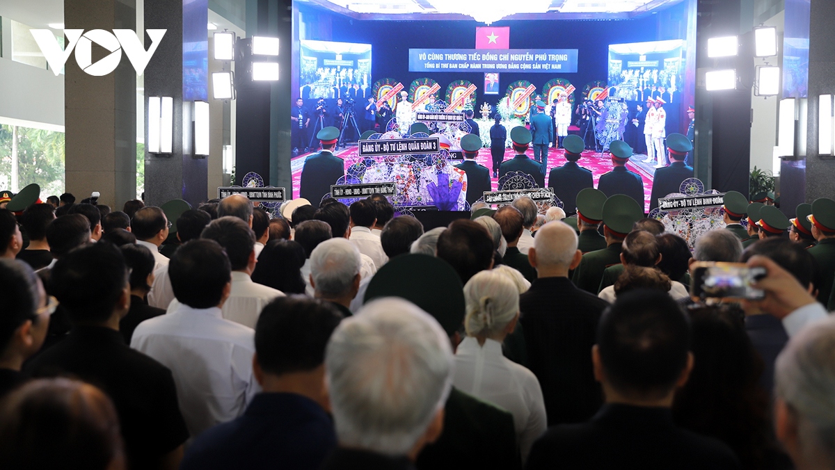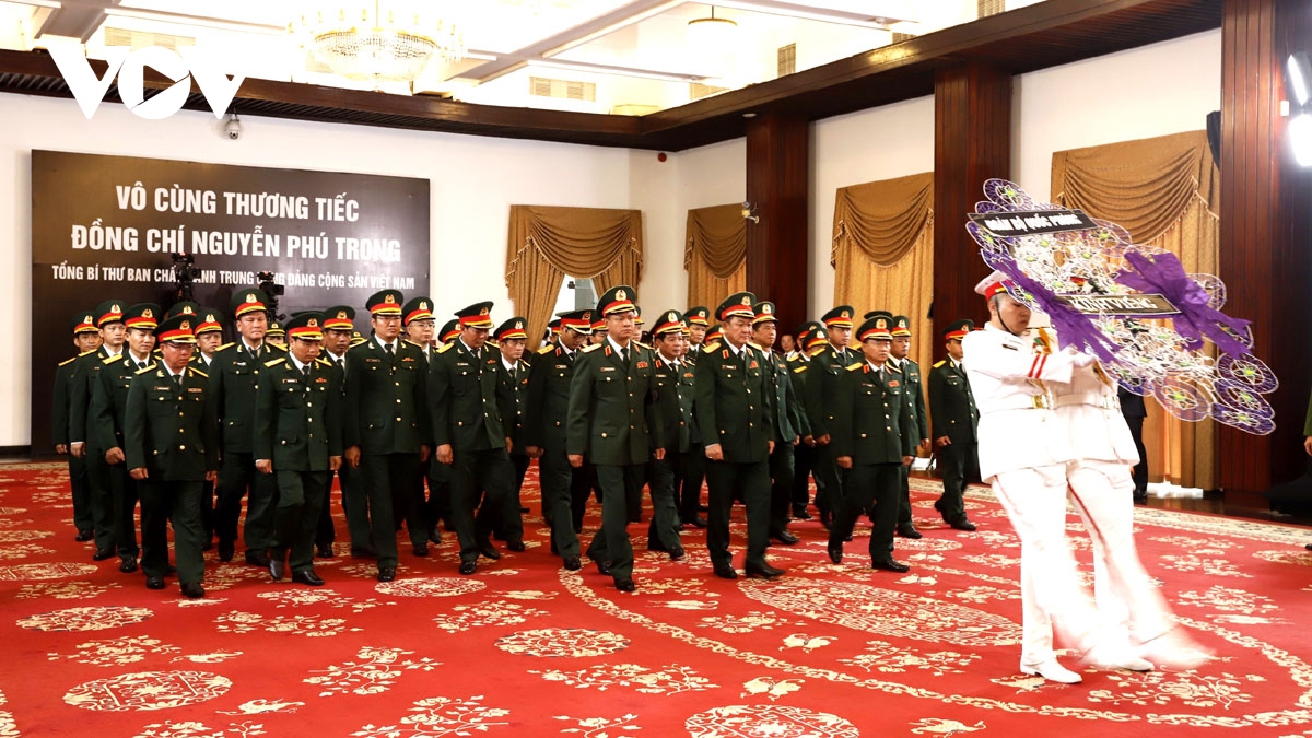 Đoàn đại biểu Bộ Quốc phòng viếng Tổng Bí thư tại Hội trường Thống Nhất. |