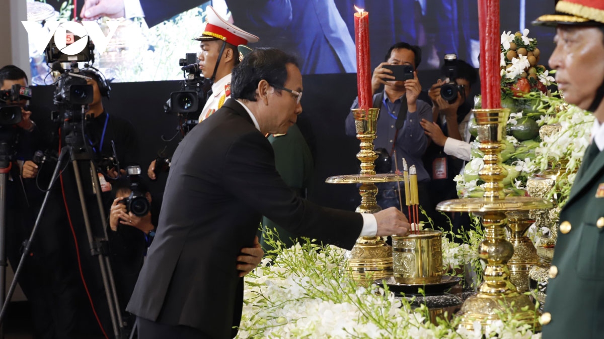 Ủy viên Bộ Chính trị, Bí thư Thành ủy TP. Hồ Chí Minh Nguyễn Văn Nên và các đại biểu làm lễ mặc niệm. |