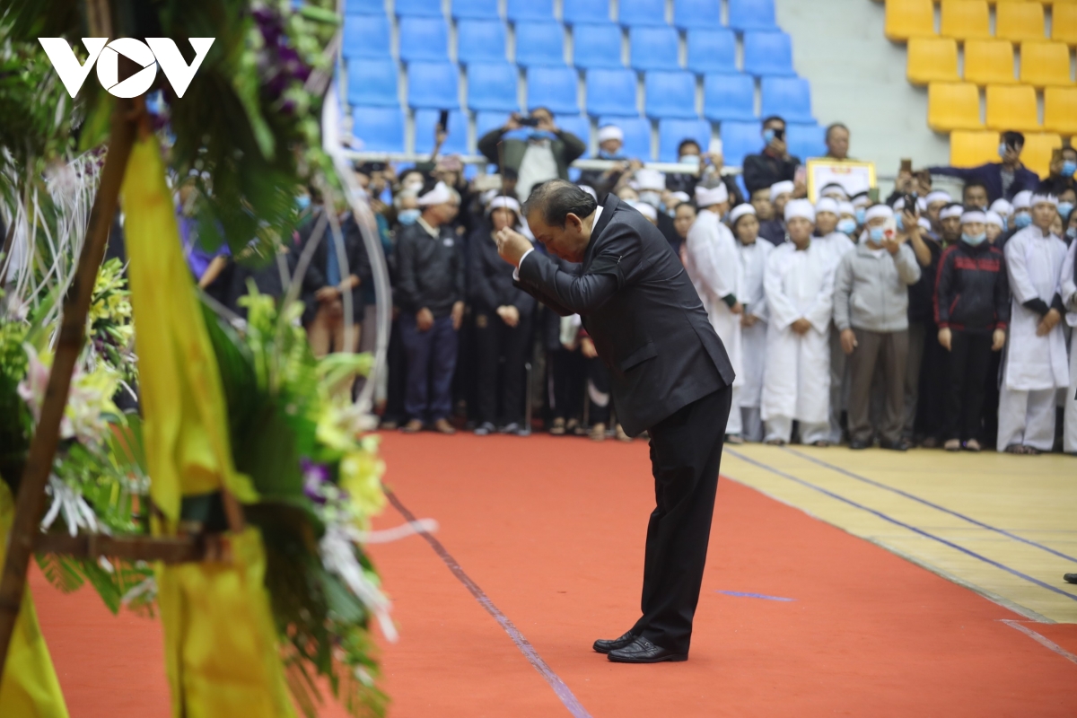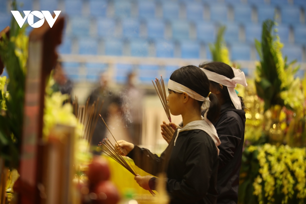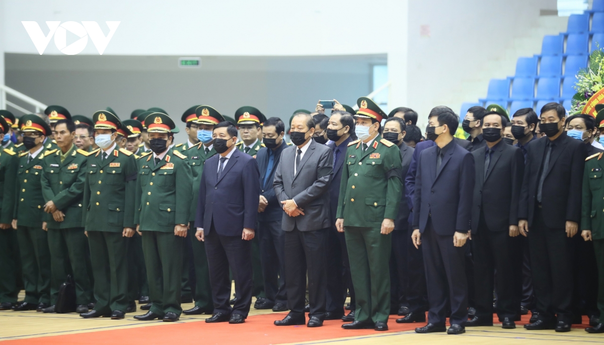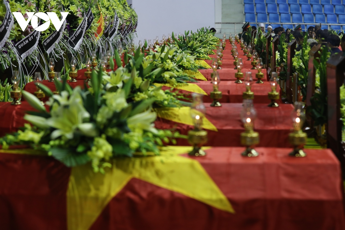 Từ sớm đông đảo cán bộ, chiến sĩ các đơn vị thuộc Quân khu 4, Bộ CHQS tỉnh Quảng Trị đã có mặt tại Nhà thi đấu đa năng để hoàn tất các khâu cuối cùng, đảm bảo buổi lễ diễn ra trang trọng. Lễ viếng bắt đầu từ 7h đến 10 giờ. Lễ truy điệu và đưa tang các liệt sĩ diễn ra từ 10 giờ đến 11 giờ.