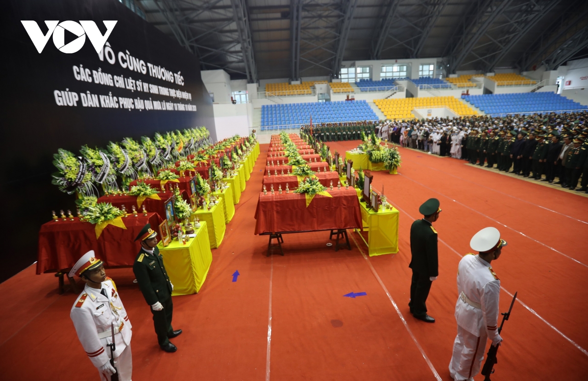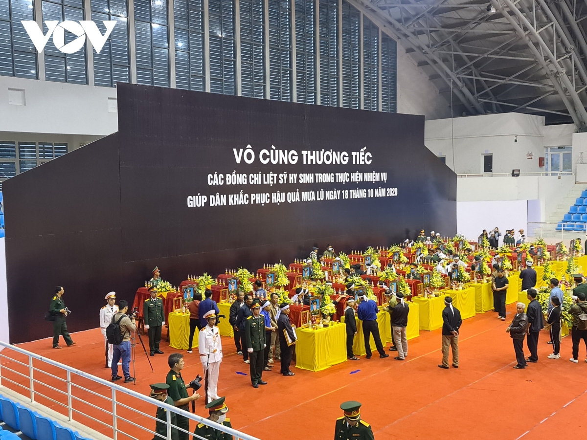 Sáng nay (22/10), tại Nhà thi đấu đa năng, thành phố Đông Hà, tỉnh Quảng Trị diễn ra Lễ viếng, lễ truy điệu và tiễn đưa 22 cán bộ, chiến sĩ của Đoàn KT-QP 337 hy sinh trong khi làm nhiệm vụ cứu hộ, cứu nạn ngày 18/10 tại xã Hướng Phùng, huyện Hướng Hóa.