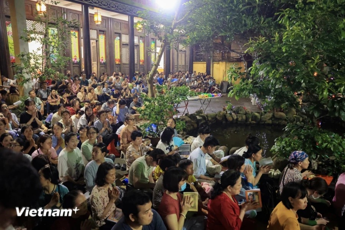 Ngày nay, lễ Vu Lan không chỉ đơn thuần là một ngày lễ tôn giáo thiêng liêng mà còn là một ngày lễ của tình người, có ý nghĩa đặc biệt sâu sắc, hướng mỗi người trở về với cội nguồn dân tộc, trở về với đạo lý “uống nước nhớ nguồn”. Ảnh: Hoài Nam/Vietnam+ |