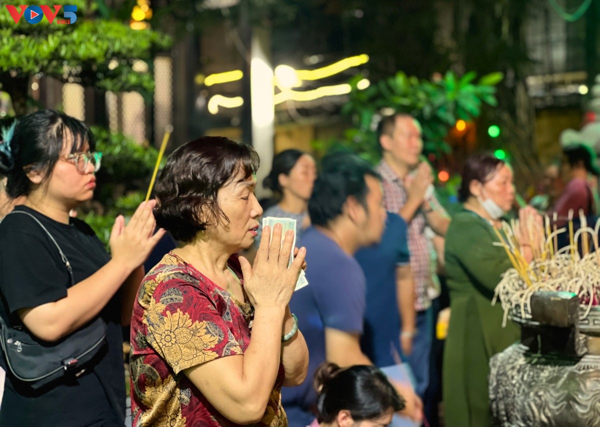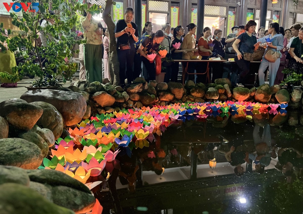 Sau khóa lễ, người dân thả đèn hoa đăng – một nghi thức truyền thống có nguồn cội từ Phật giáo, mang ý nghĩa cầu siêu cho những người đã khuất. |