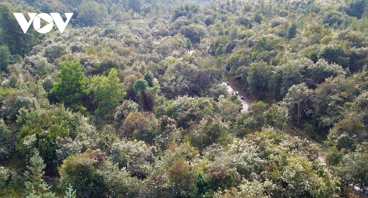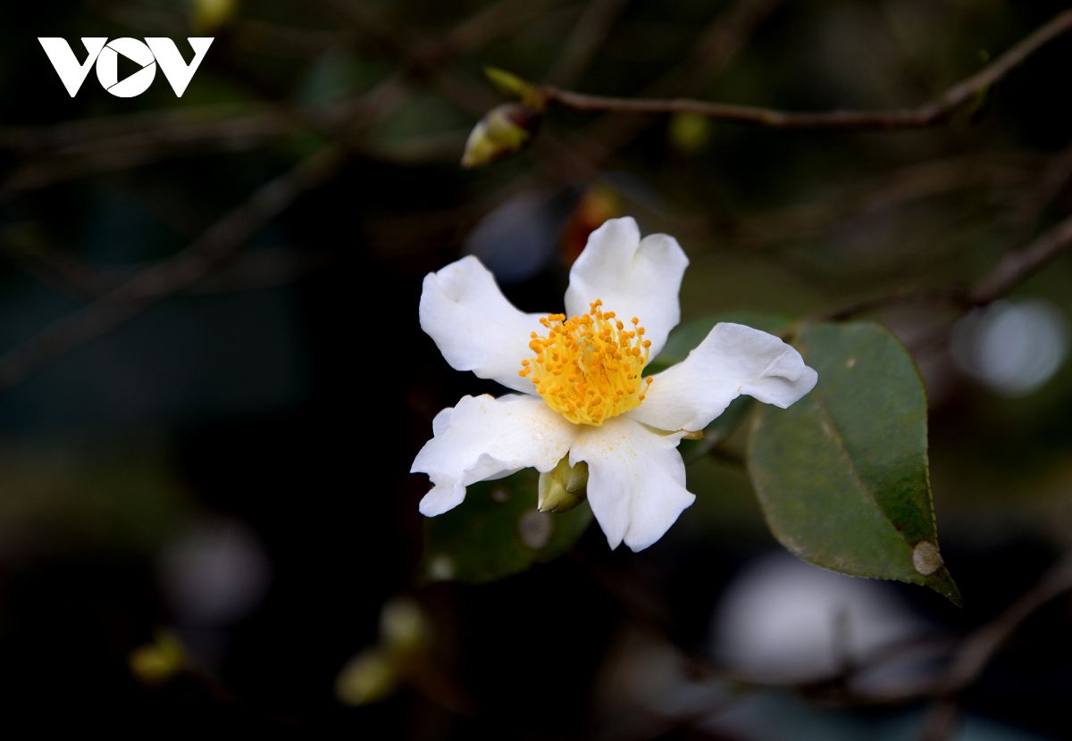 | Hoa Sở nở bung khiến nhiều du khách liên tưởng tới hoa chè nhưng nhìn kĩ thì cánh hoa Sở to hơn, mang màu trắng tinh khôi và hương thơm dịu nhẹ. |