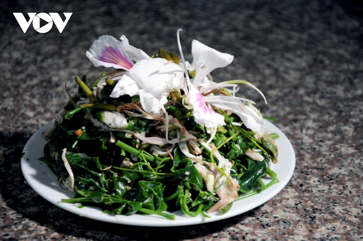 Hoa ban khi được chế biến, kết hợp với măng đắng, rau rừng...