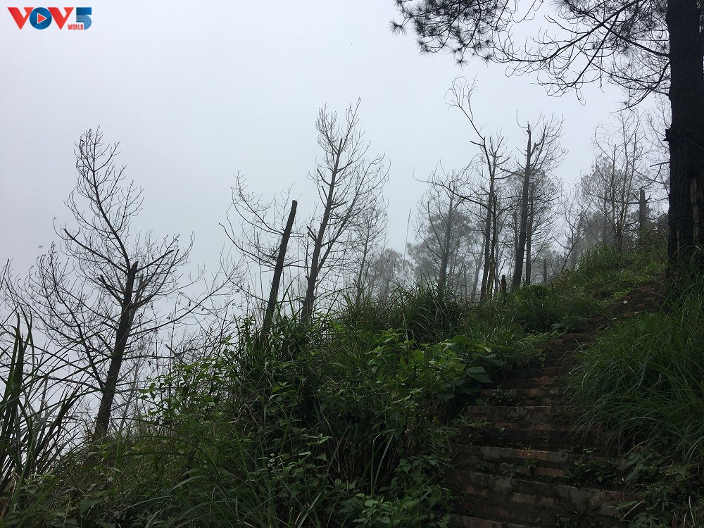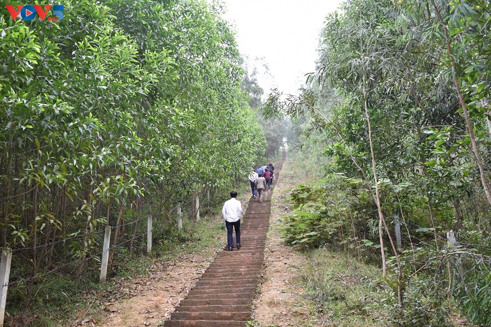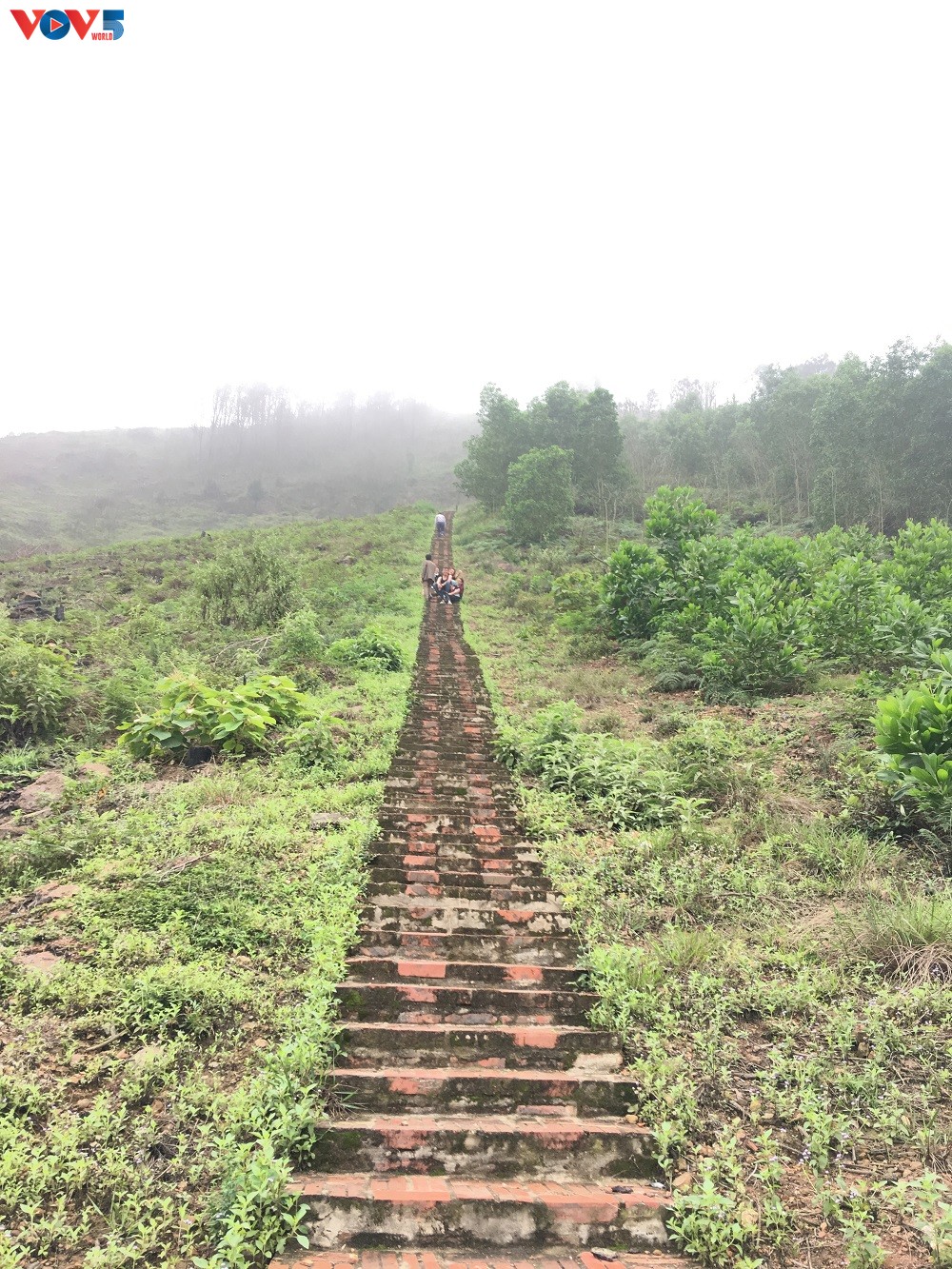 Đường lên đền Long Sơn Thủy Quốc trước đi khá khó khăn nhưng nay được tu sửa thành từng bậc khiến cho việc đi lại dễ dàng hơn. |