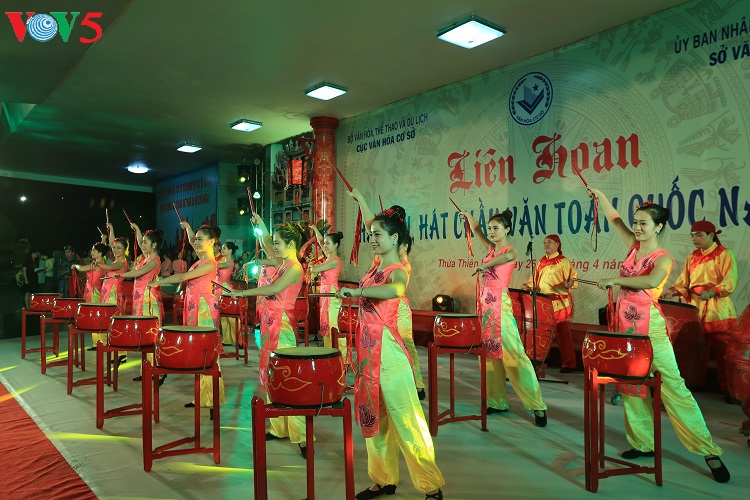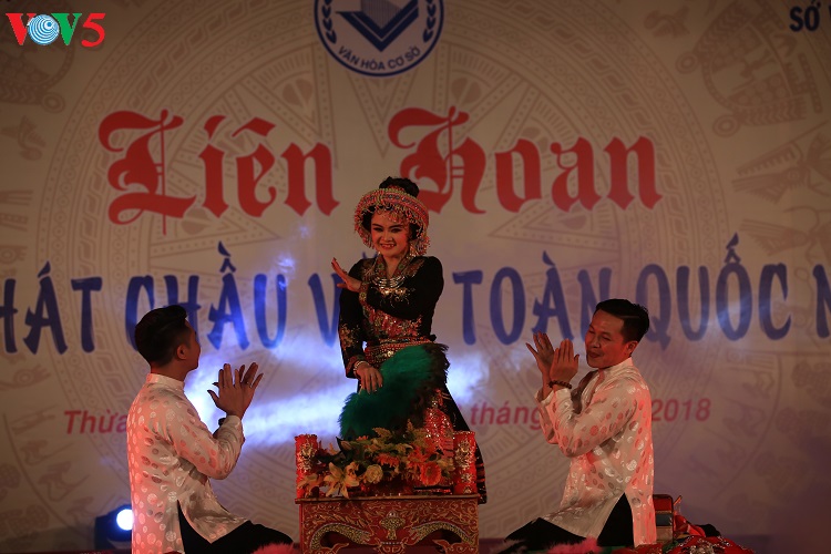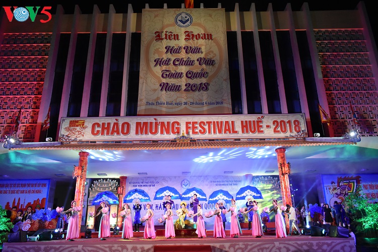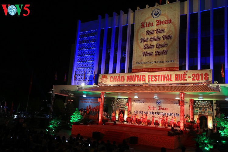 (VOV5) - Liên hoan hát Văn, hát Chầu văn toàn quốc 2018 khai mạc tối 26/4, tại thành phố Huế. Liên hoan nhằm tôn vinh, quảng bá và phát huy các giá trị nghệ thuật của loại hình hát văn, hát chầu văn, góp phần nâng cao nhận thức của các cấp, các ngành và cộng đồng trong việc bảo tồn, thừa kế, giới thiệu với công chúng và du khách về giá trị nghệ thuật trong "Thực hành Tín ngưỡng thờ Mẫu Tam phủ của người Việt" đã được UNESCO công nhận là Di sản văn hóa phi vật thể đại diện của nhân loại.