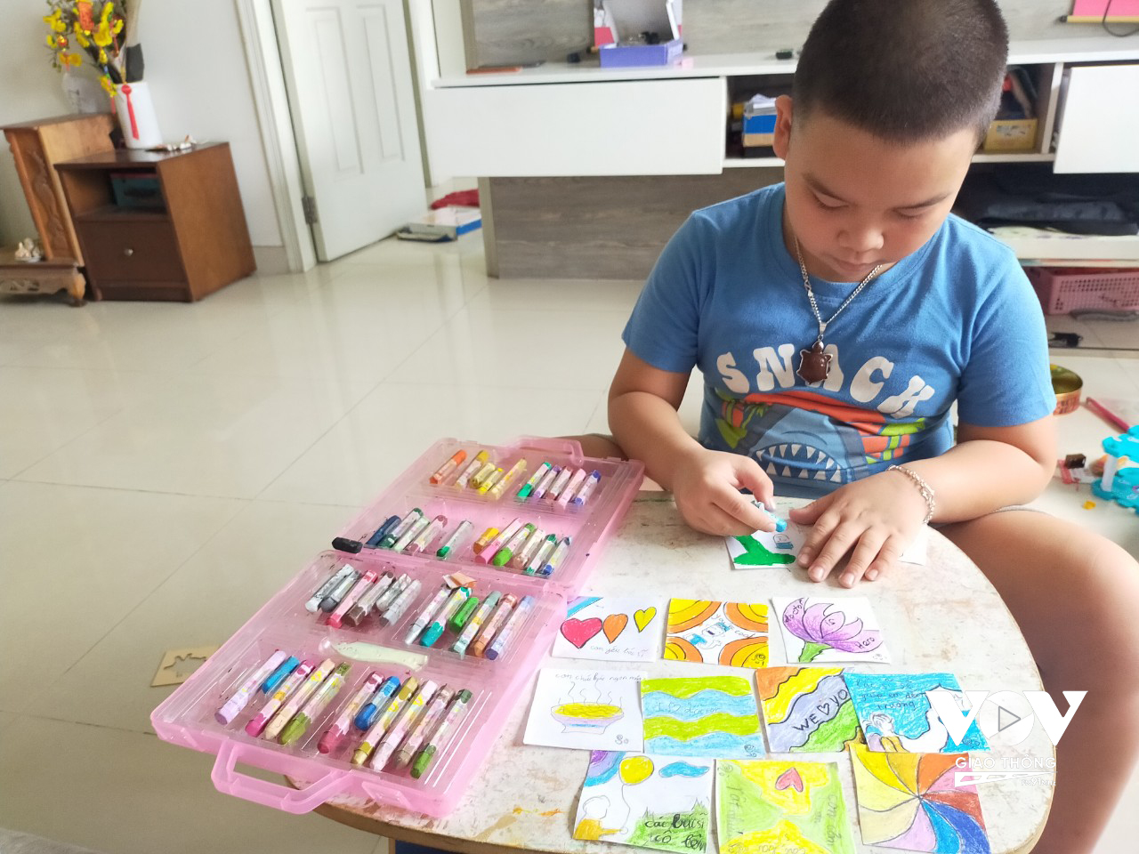 Tại Cộng đồng nhà B lô CD, chung cư Bình Khánh, phường An Phú (TP. Thủ Đức), khi bố mẹ vất vả đêm ngày với 200 suất ăn tiếp sức cho các bệnh viện dã chiến, các bạn nhỏ cũng muốn được giống như bố mẹ, góp phần động viên các y bác sỹ và các cô chú ở tuyến đầu chống dịch.