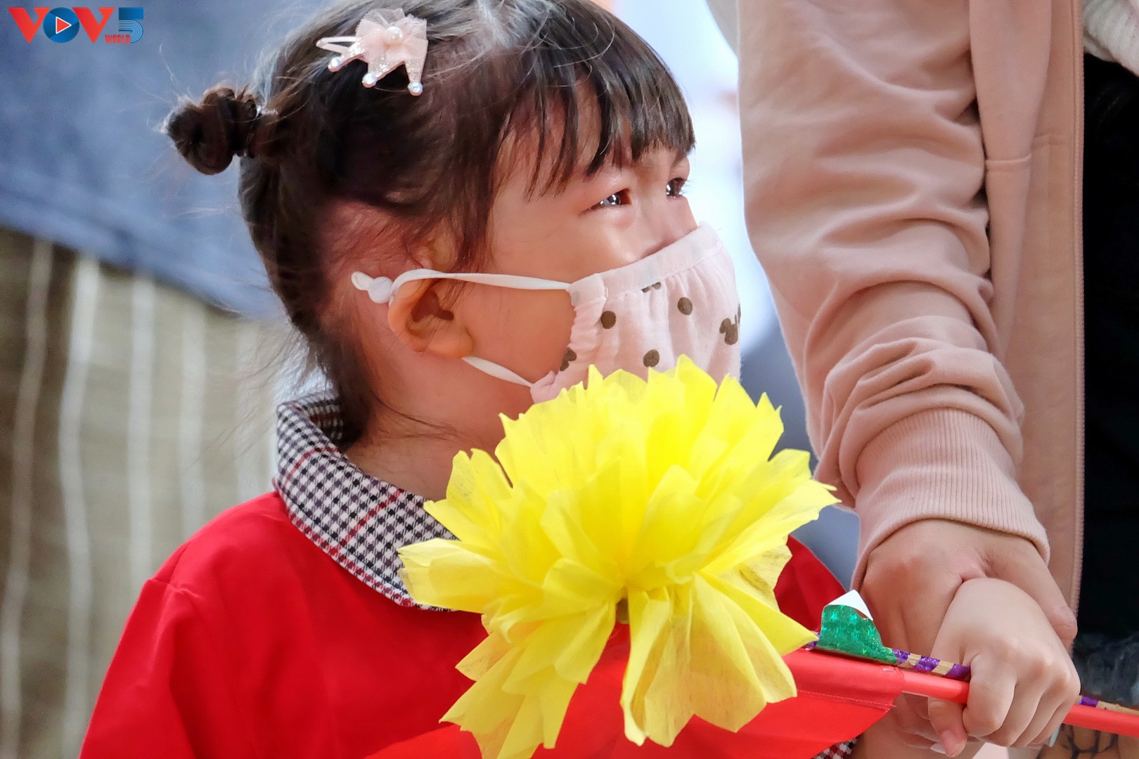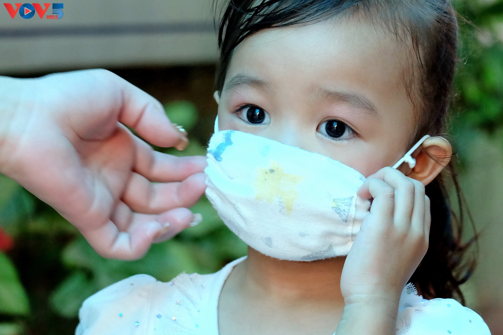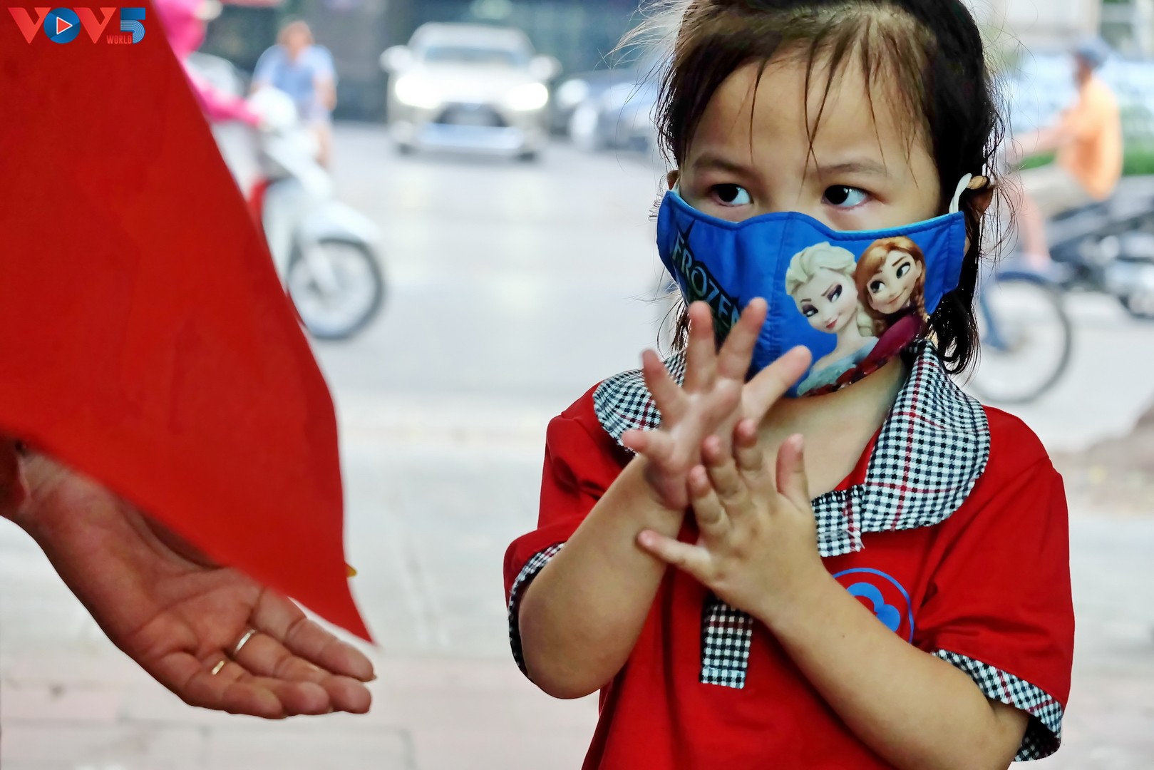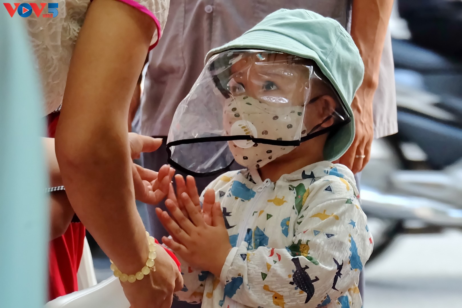 Các bậc phụ huynh đưa bé đến trường đều tuân thủ biện pháp phòng chống dịch COVID-19. |