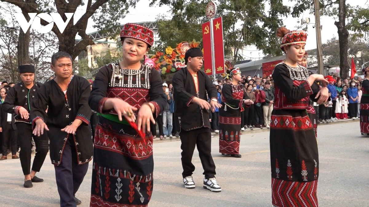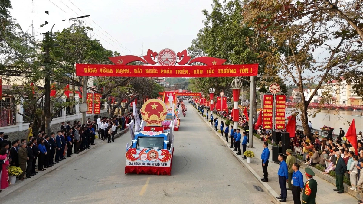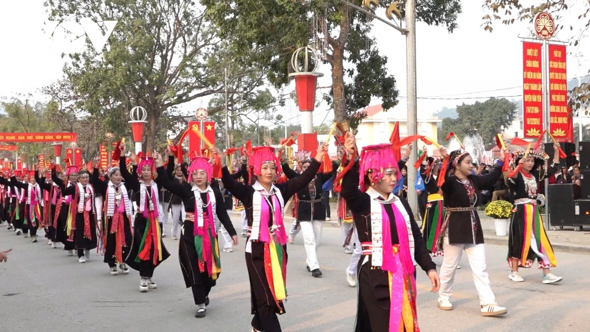 | Chương trình diễu diễn đường phố mang chủ đề “Văn Yên - 60 năm tự hào bản sắc”. |