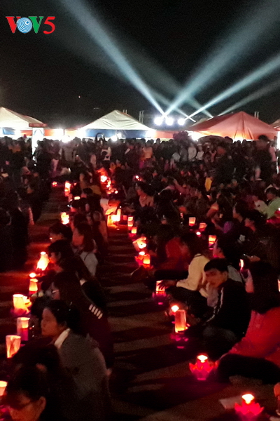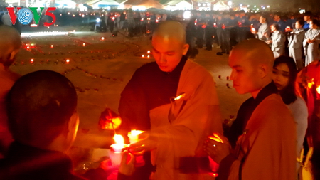 Tại khu chính lễ, hàng nghìn ngọn nến được phật tử thắp lên
