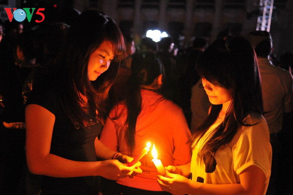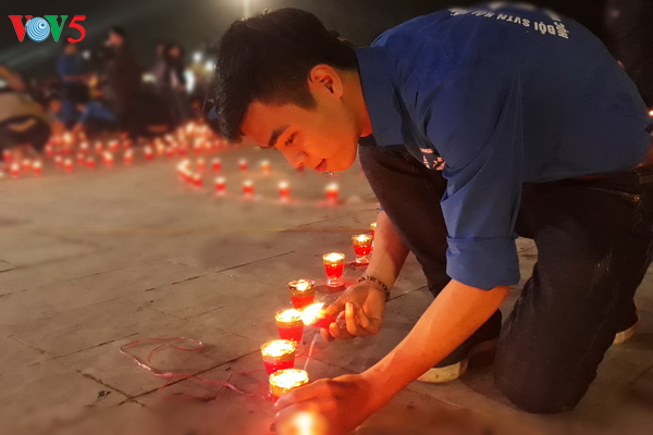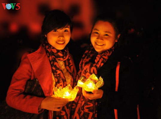 Ánh sáng những ngọn nến hoa đăng mang theo những lời chúc tốt lành được truyền đi khắp mọi người