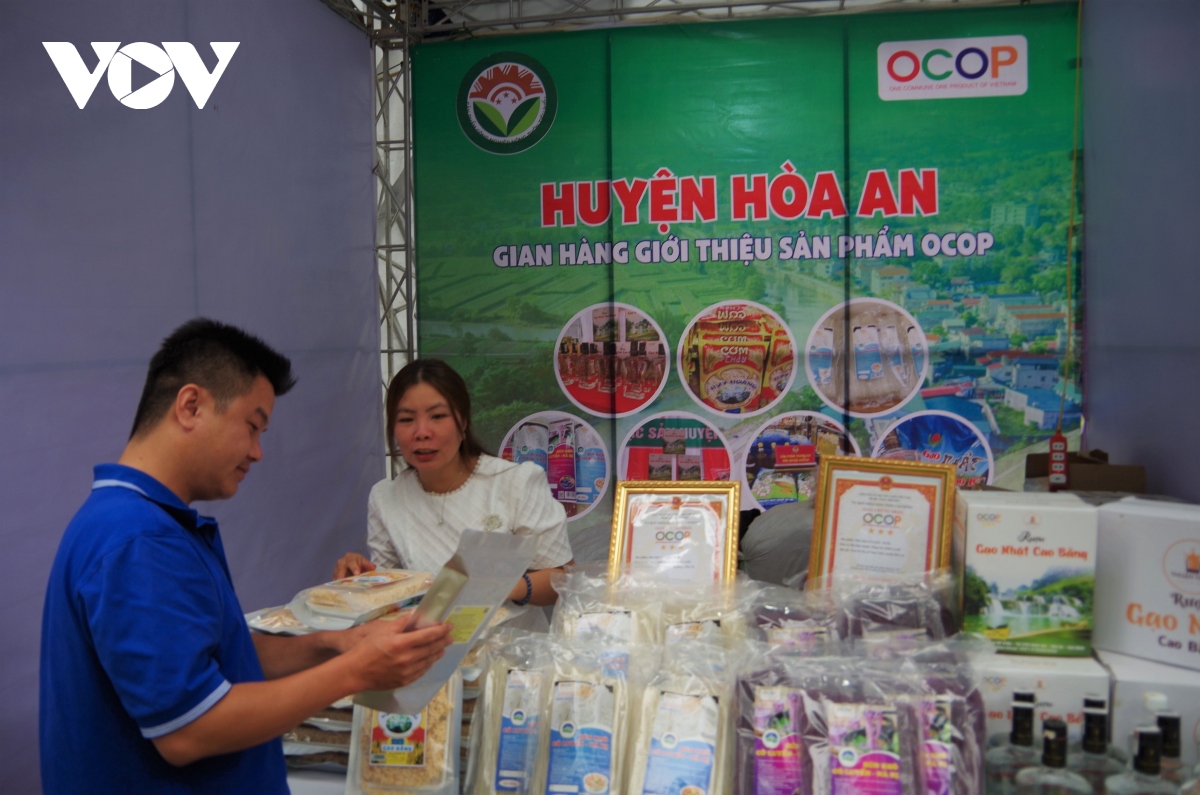 Du khách thăm các gian hàng giới thiệu sản phẩm OCOP của tỉnh Cao Bằng. |