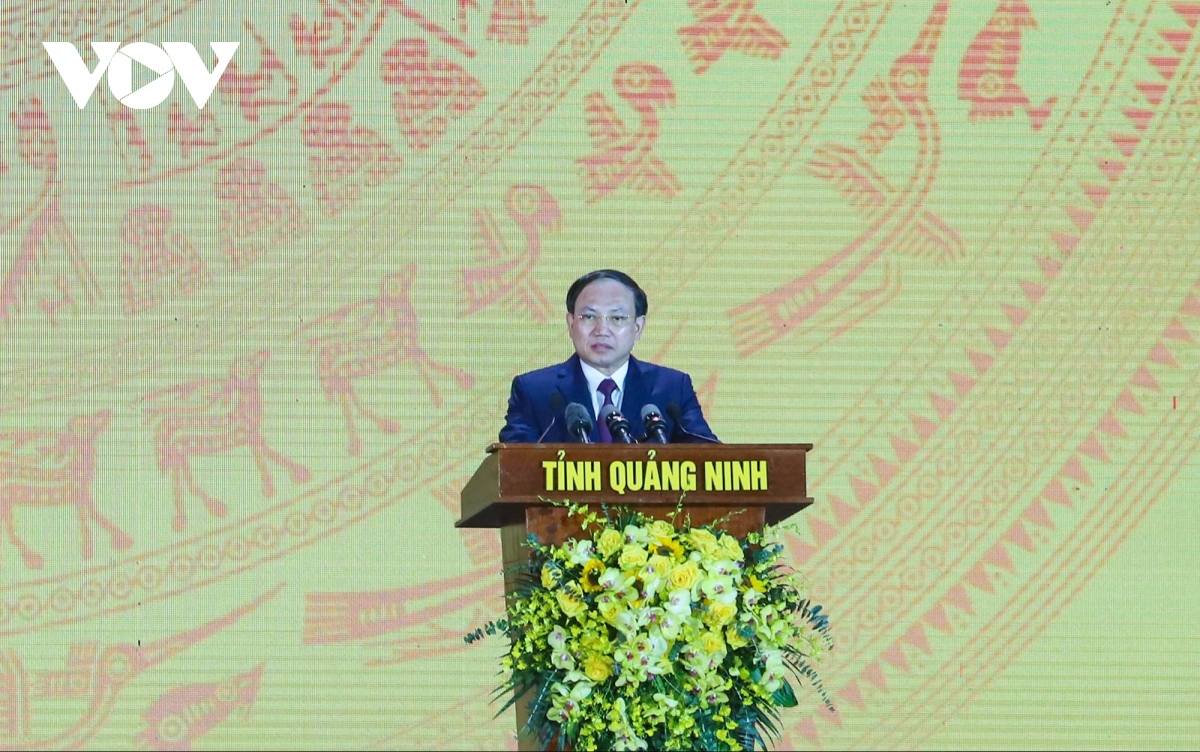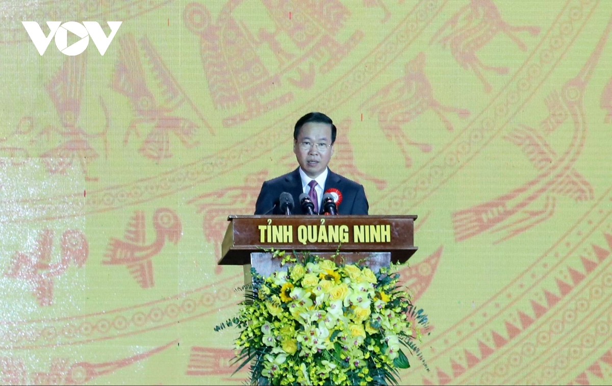 Chủ tịch nước Võ Văn Thưởng chúc mừng, biểu dương những thành tích mà Đảng bộ và Nhân dân tỉnh Quảng Ninh đã đạt được trong những năm qua, đồng thời tin tưởng Quảng Ninh sẽ phát huy truyền thống văn hóa, lịch sử vẻ vang của Vùng Mỏ Anh hùng, cùng với những thành tựu to lớn đạt được sau 60 năm thành lập tỉnh để tiếp tục giành được nhiều kết quả to lớn hơn nữa; không ngừng phấn đấu để Quảng Ninh luôn là một vùng rộng lớn, yên bình, bền vững; trở thành một tỉnh kiểu mẫu giàu đẹp, văn minh, hiện đại, nhân dân ngày càng ấm no, bình yên, hạnh phúc.