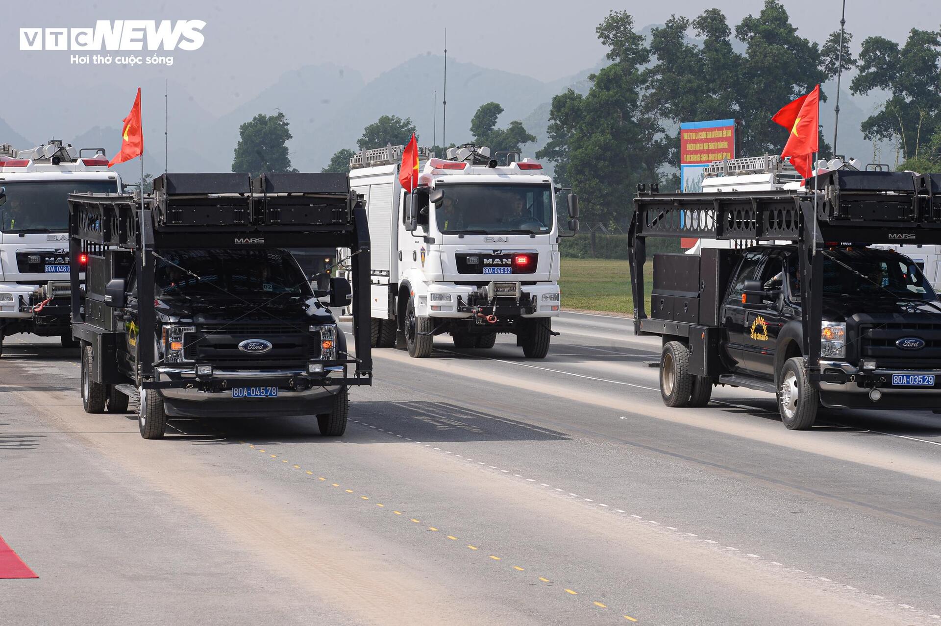 | Lực lượng Công an Nhân dân gây ấn tượng khi diễu hành với đội hình các khối xe chuyên dụng, từ xe chỉ huy giao thông, xe đặc chủng bọc thép chống đạn, tới xe tác chiến dưới nước đa năng, thể hiện năng lực sẵn sàng ứng phó với mọi tình huống từ an ninh trật tự đến cứu hộ cứu nạn. |