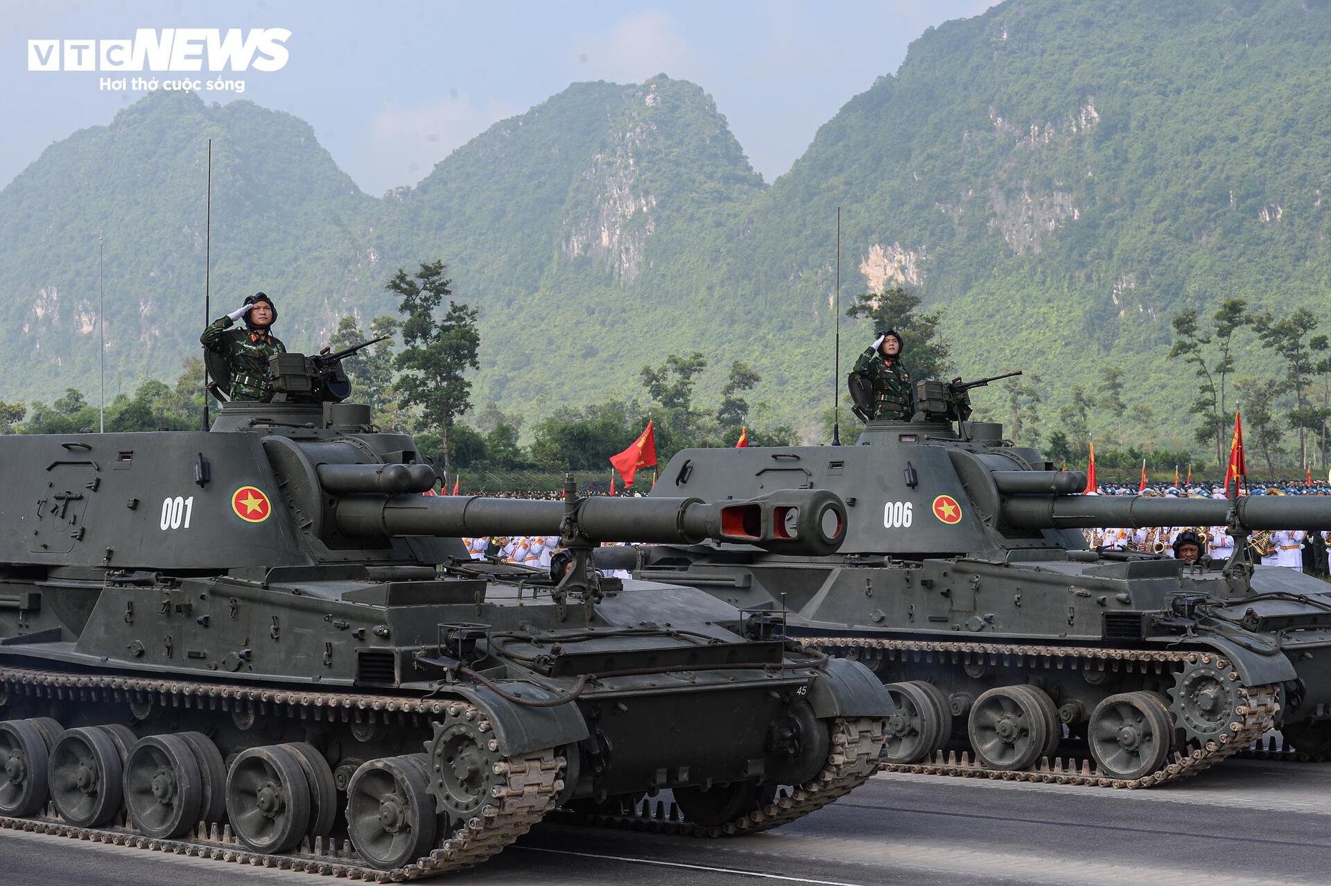 | Khối xe pháo cũng là điểm nhấn nổi bật trong buổi hợp luyện khi hội tụ nhiều loại khí tài uy lực. |