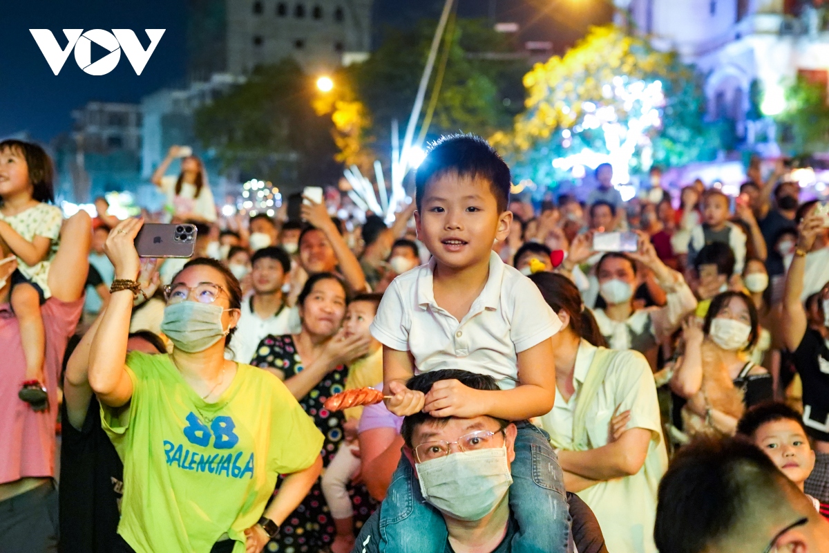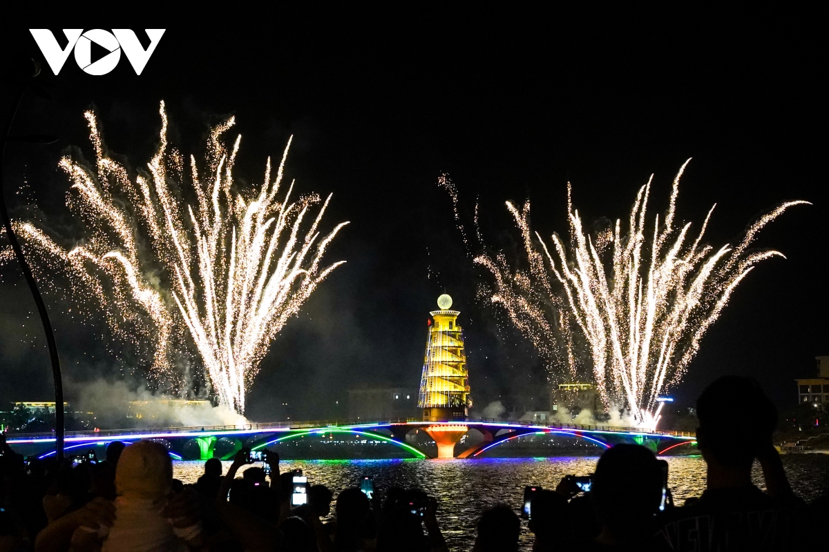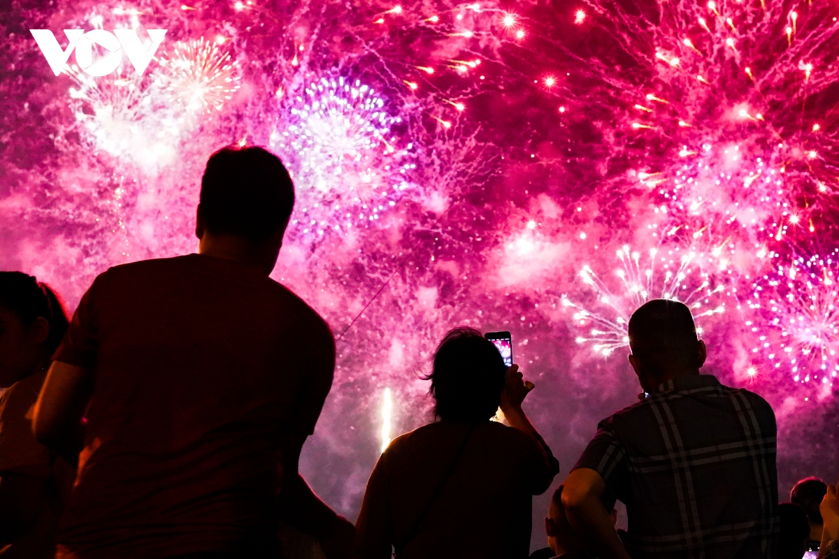 Đúng 21h, màn pháo hoa bắt đầu trong tiếng hò reo của người dân và du khách. |
