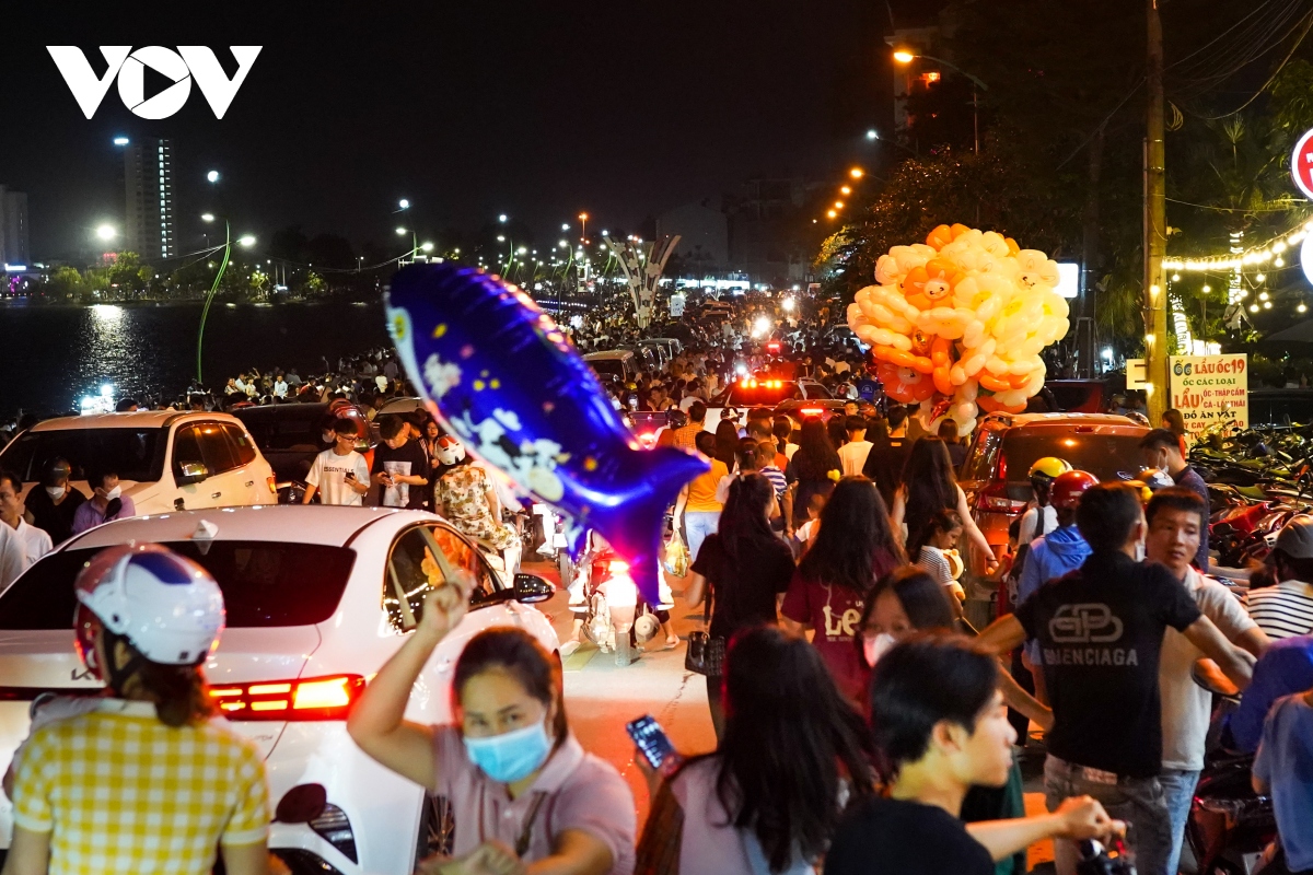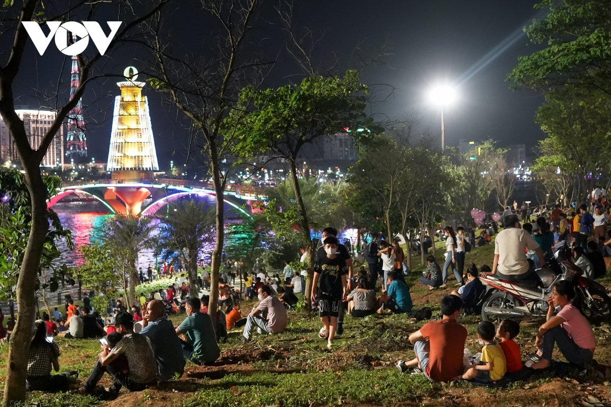 Ai cũng có gắng chọn cho mình một vị trí tốt nhất để có thể ngắm toàn cảnh những chùm pháo hoa. |
