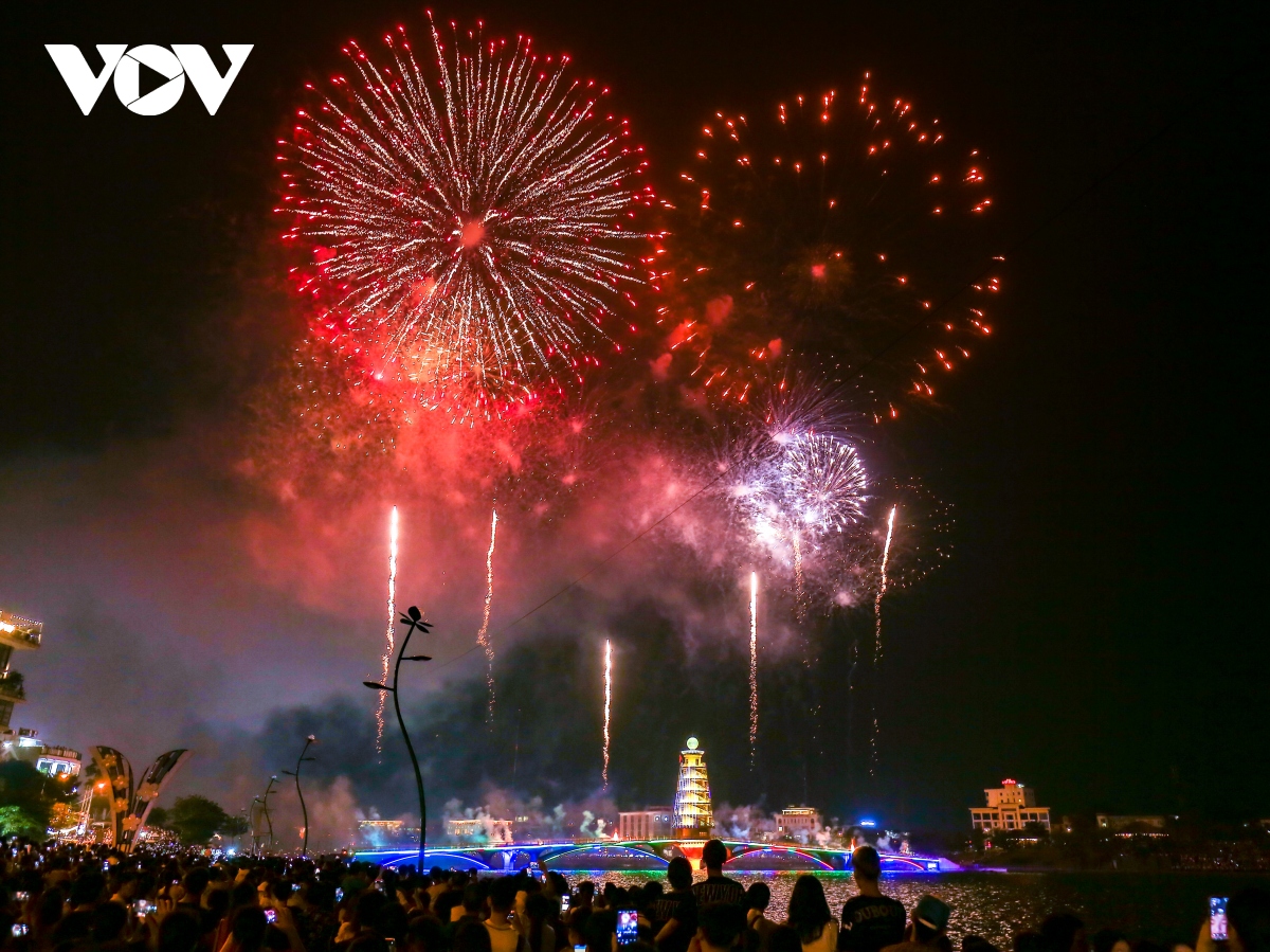 Được biết, trong trận địa có hơn 3.000 quả pháo hoa được chuẩn bị từ hai ngày trước. Trong 15 phút, có tổng cộng 800 quả pháo hoa nổ tầm cao, 250 quả pháo hoa tầm trung (tầm thấp vừa) và 800 quả pháo hoa tầm thấp được phóng lên bầu trời. |