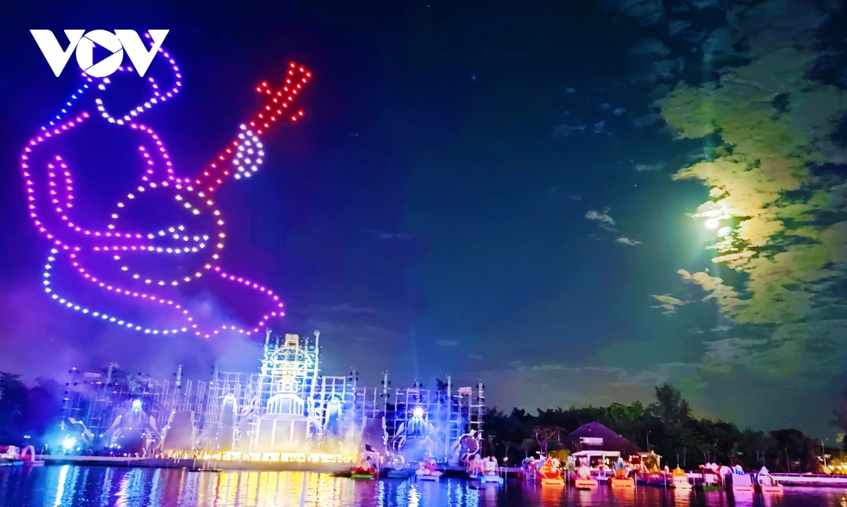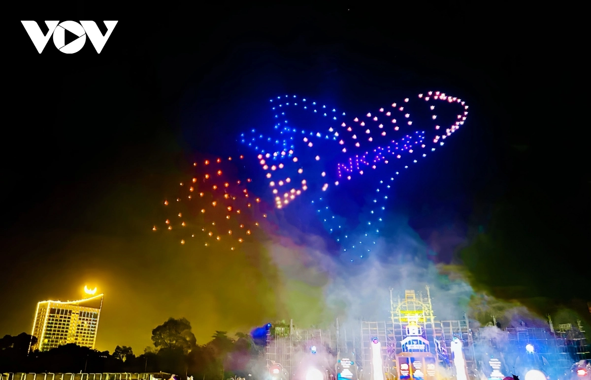 Con tàu thể hiện khát vọng trở thành đô thị hạt nhân vùng ĐBSCL được thể hiện qua màn trình diễn Drone Light