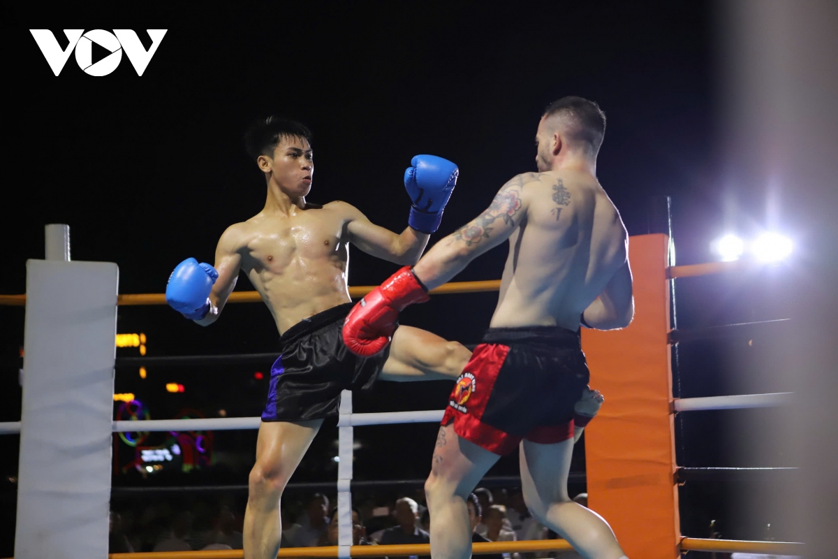Trận đấu muay Thái giữa võ sĩ người Italia và võ sĩ Bình Định diễn ra hấp dẫn. |