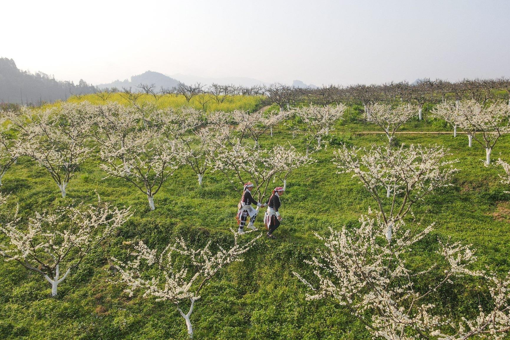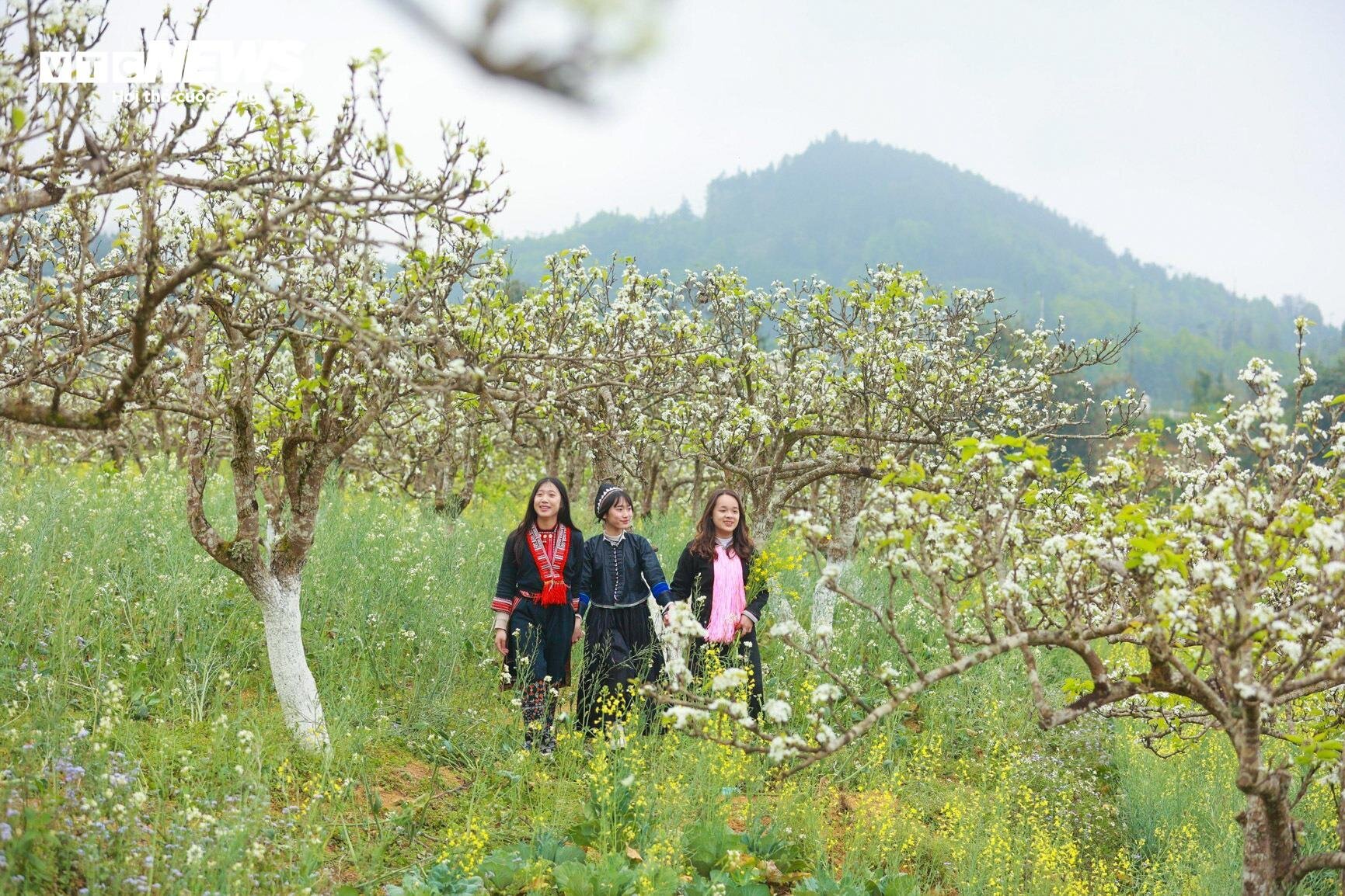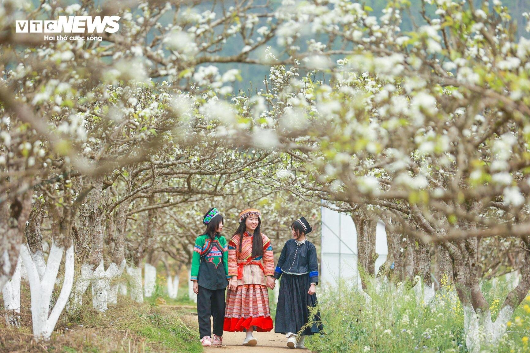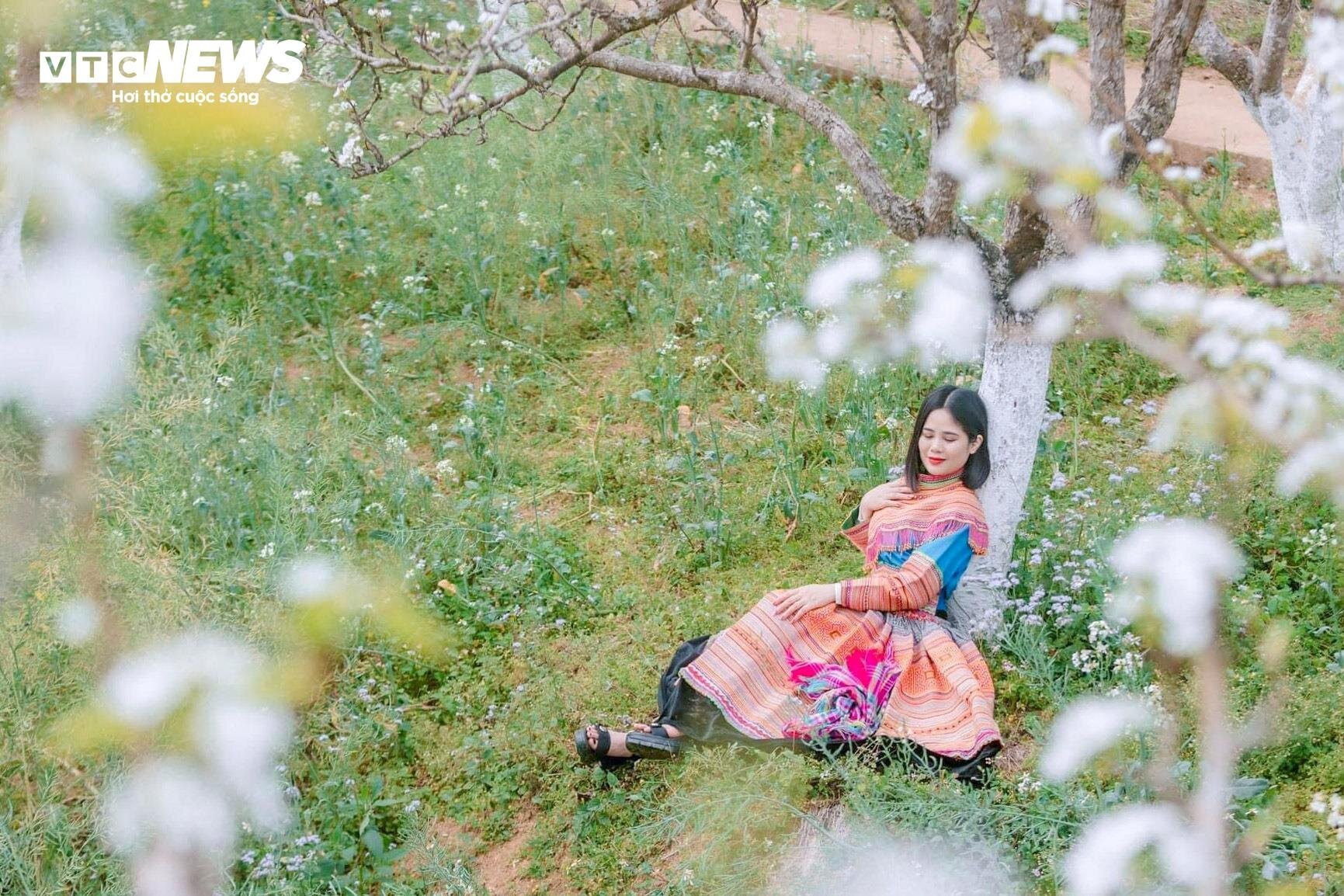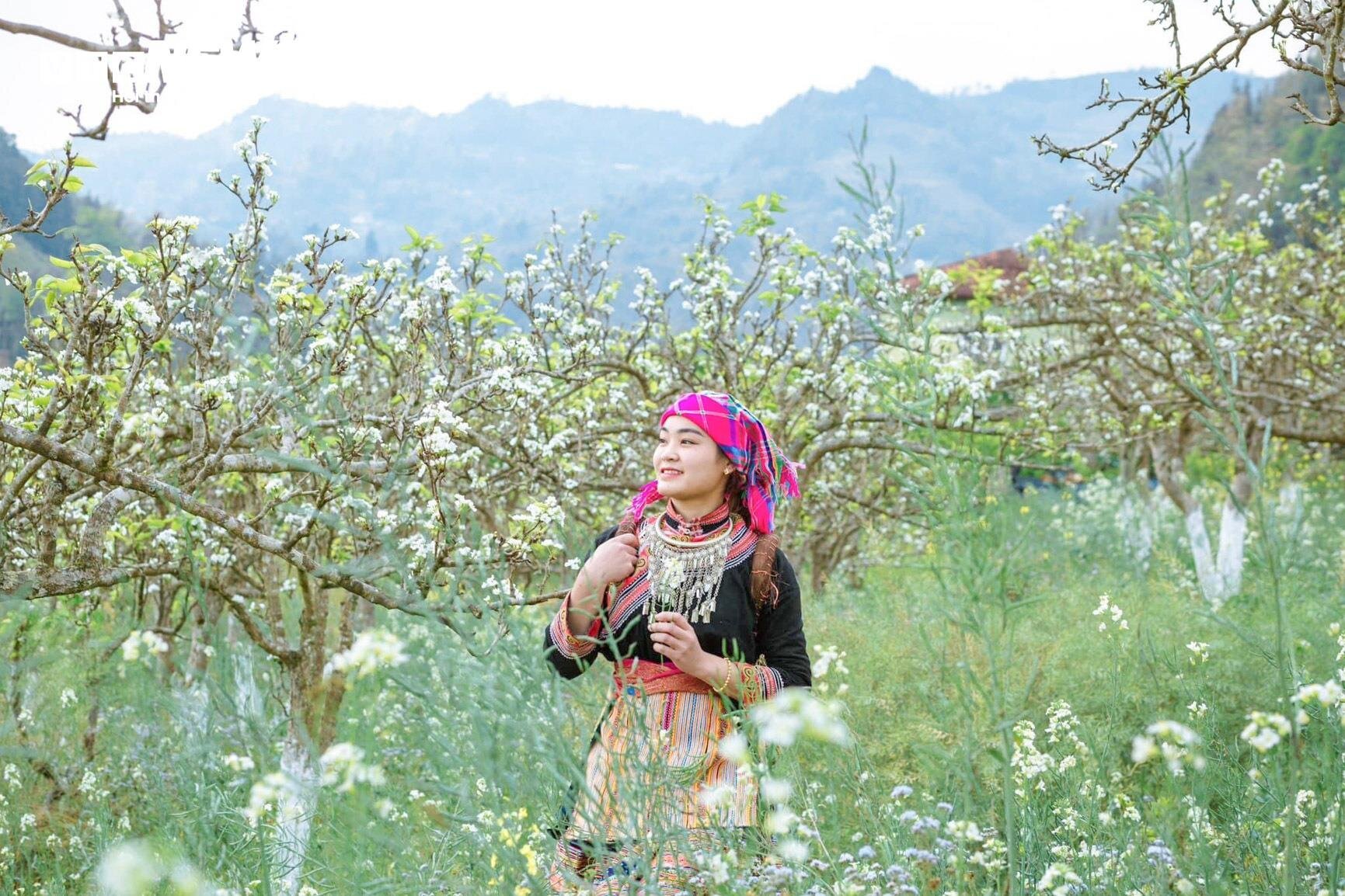 Cô gái Mông khoe sắc giữa rừng hoa lê nở trắng muốt ở Bắc Hà. |