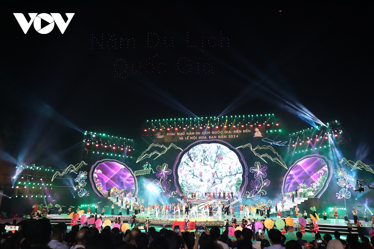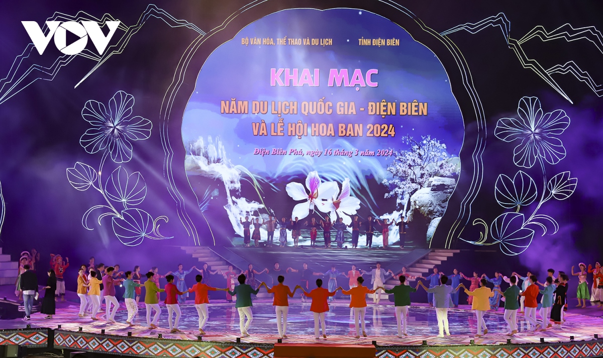 Tối 16/3, tại Quảng trường 7/5, thành phố Điện Biên Phủ, tỉnh Điện Biên đã diễn ra Lễ khai mạc Năm Du lịch Quốc gia - Điện Biên và Lễ hội hoa Ban 2024 với chủ đề “Vinh quang Điện Biên Phủ - trải nghiệm bất tận”. Những màn trình diễn với vũ đạo, âm thanh ánh sáng, hiệu ứng sân khấu hiện đại, mang đến cho người xem một cảm giác mãn nhãn, ấn tượng, khó quên.