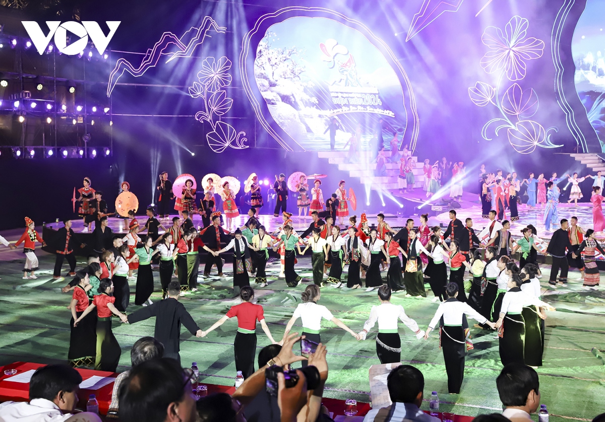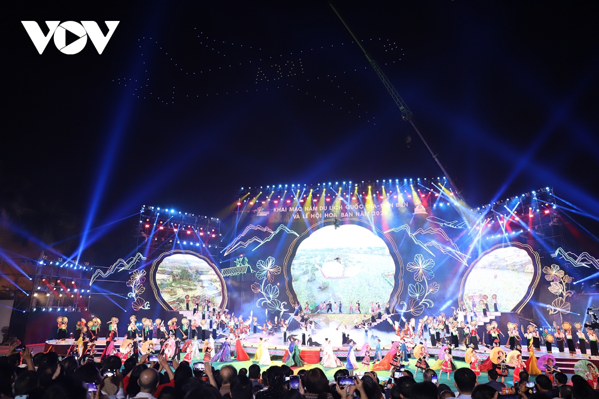 Bầu trời Điện Biên đêm khai mạc được thắp sáng bởi màn trình diễn ánh sáng nghệ thuật từ 200 chiếc máy bay không người lái lần đầu tiên xuất hiện tại đây. Hoa ban đã bung nở, lửa hội đã sẵn sàng, vòng xoè đoàn kết đang mời gọi du khách gần xa đến với miền ban trắng của núi rừng Điện Biên - Tây Bắc.