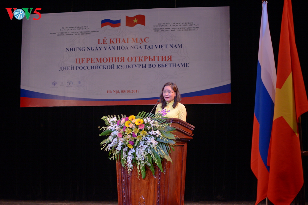 | Phát biểu tại Lễ khai mạc, Quốc vụ khanh, Thứ trưởng Bộ Văn hóa, Thể thao và Du lịch Liên bang Nga Zhuravskiy Alexander nhấn mạnh, quan hệ văn hóa giữa Liên bang Nga và Việt Nam luôn phát triển rất năng động. Các hoạt động giao lưu văn hóa được tổ chức thường xuyên ở hai nước với nhiều hình thức và quy mô khác nhau, đóng vai trò quan trọng trong việc củng cố và tăng cường quan hệ song phương giữa hai nước. |