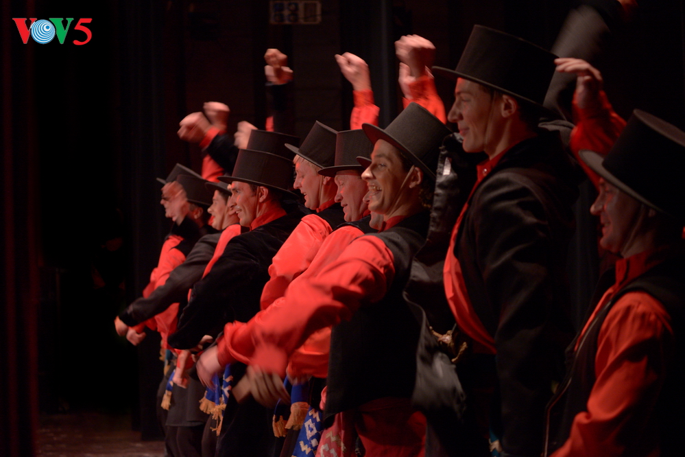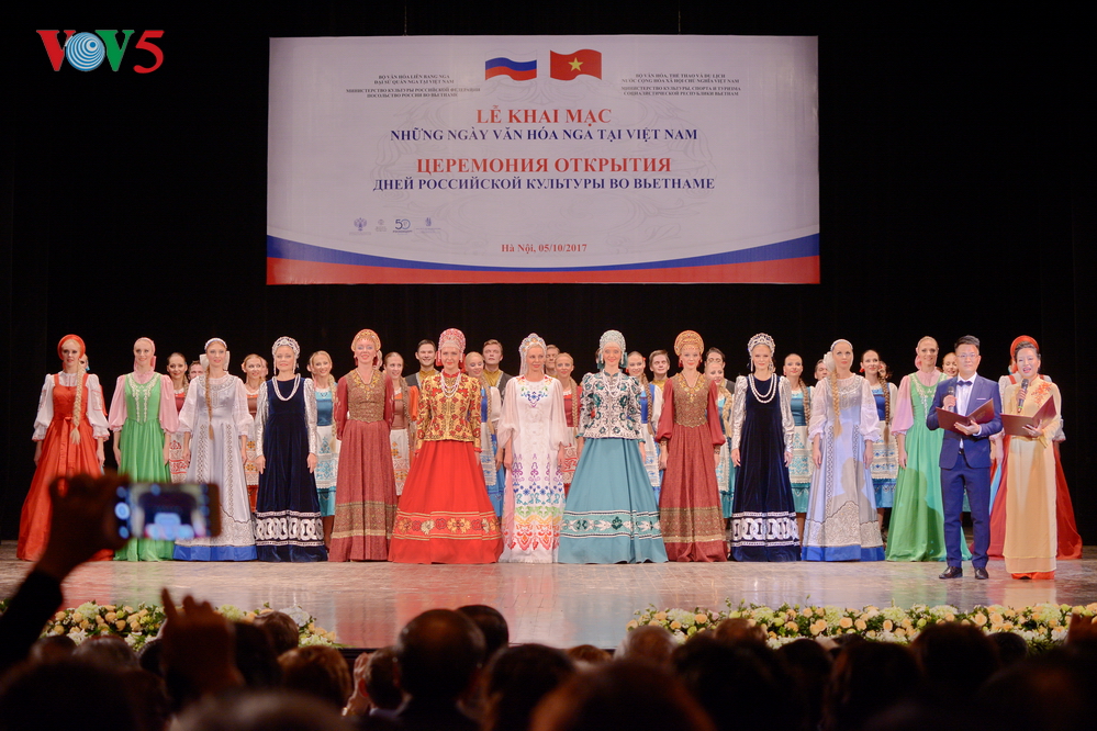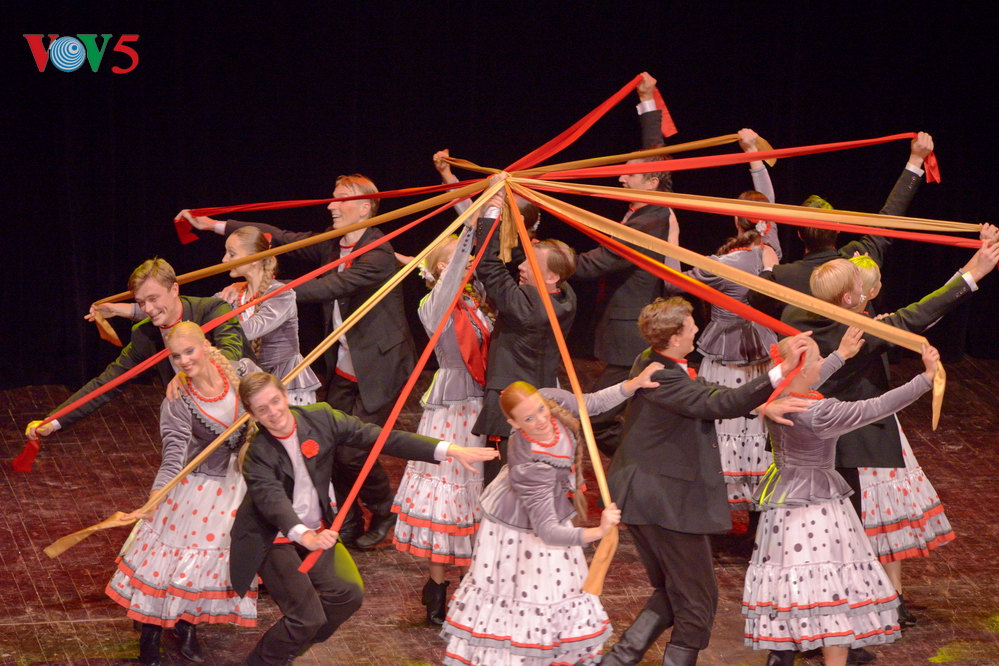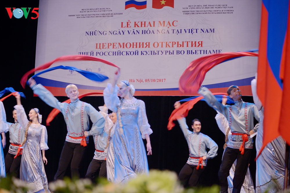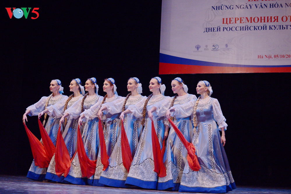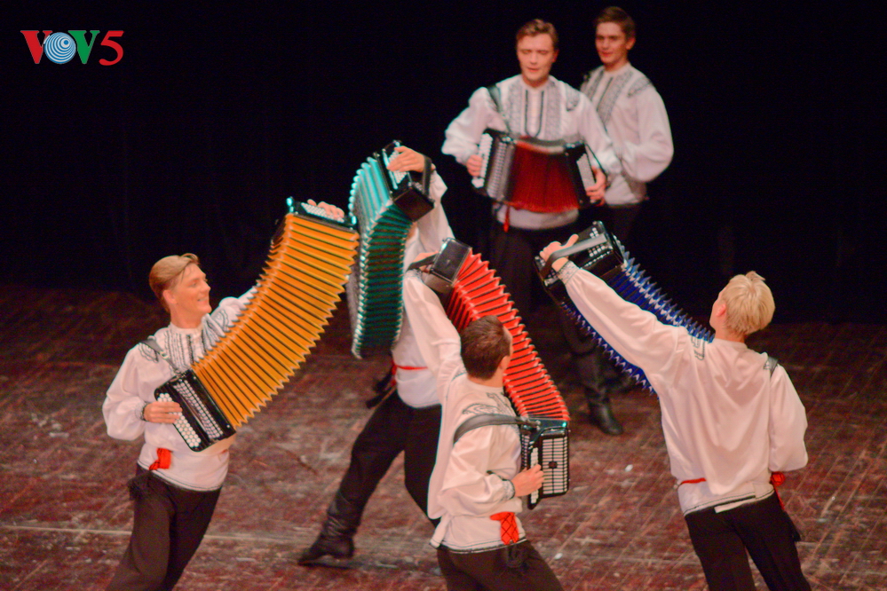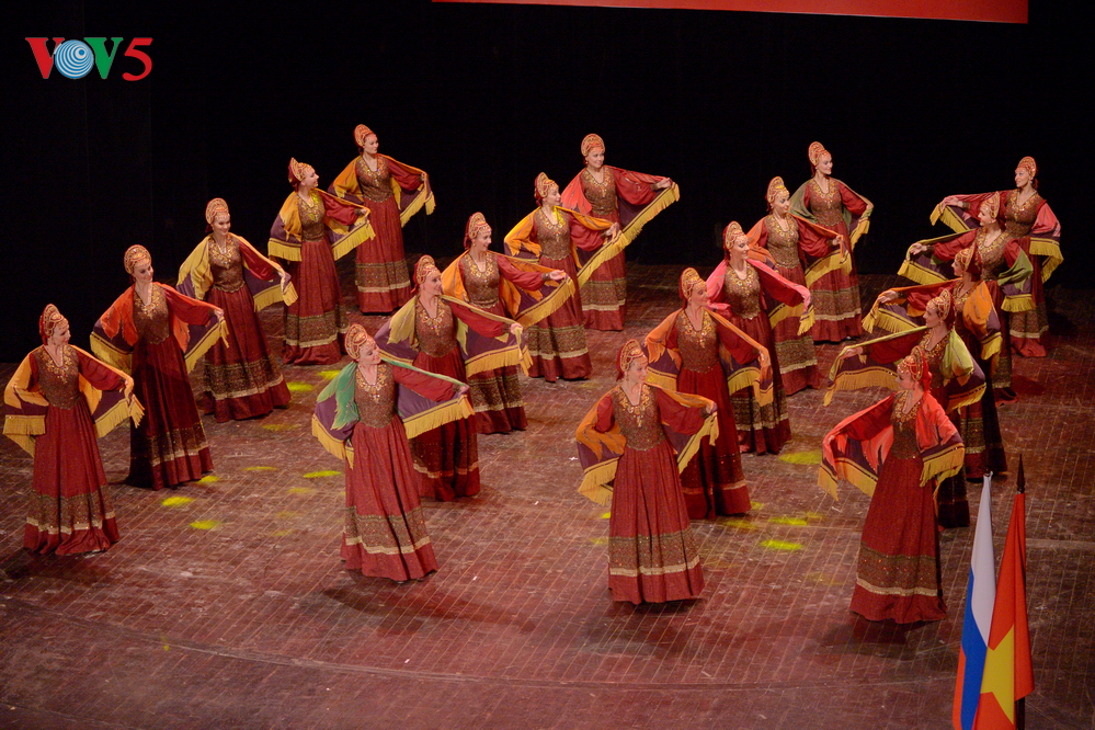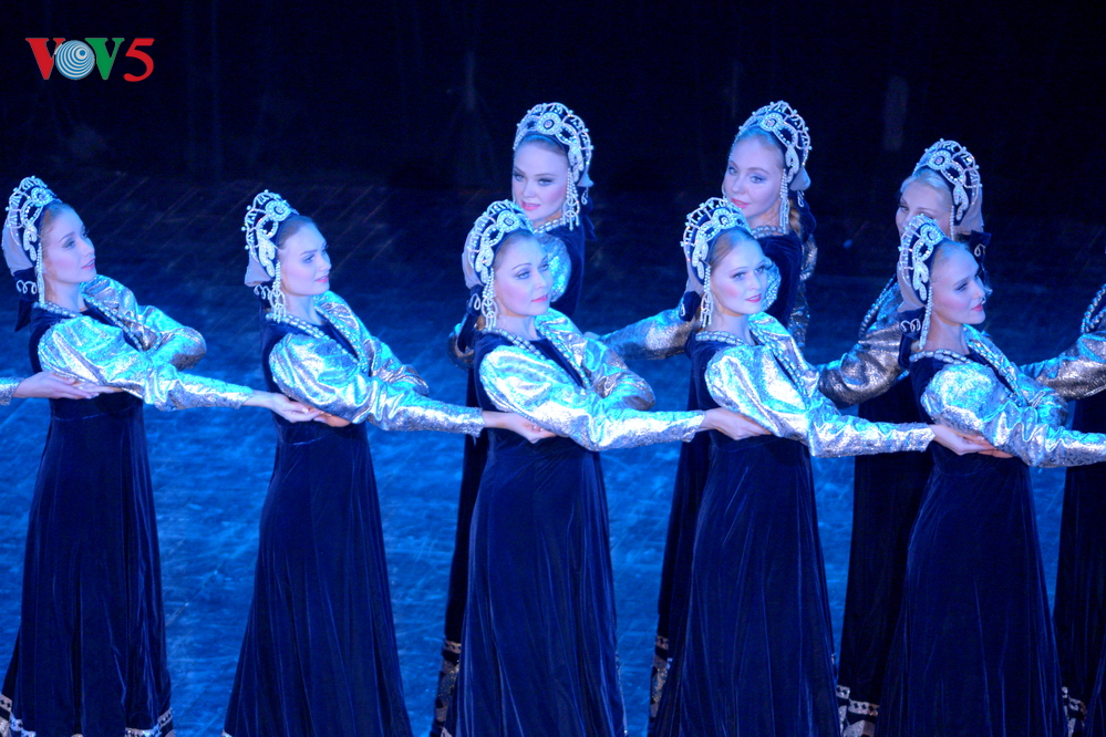 | Ngay sau Lễ khai mạc, khán giả được thưởng thức một chương trình biểu diễn nghệ thuật đặc sắc của Dàn đồng ca Quốc gia Nga “Bạch Dương”, với những điệu múa truyền thống như: Múa vòng tròn, Múa vui, Những anh chàng vui tính, Vũ khúc mùa thu, Các bác xà ích, Múa vòng tròn miền Bắc Nga, Múa khăn quàng, Tổ khúc Siberia. |