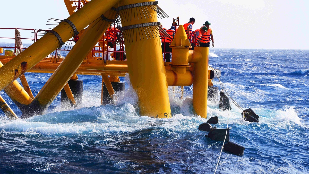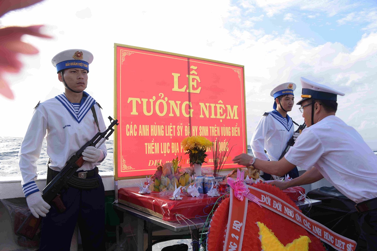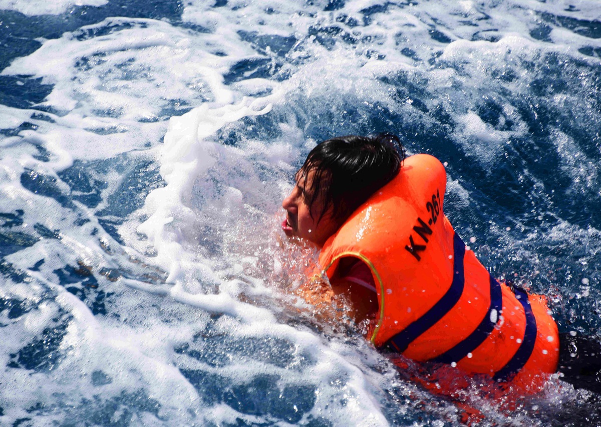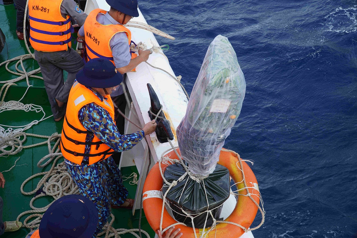 Do thời tiết sóng to gió lớn, Trung tá Nguyễn Văn Lâm, Chỉ huy trưởng Nhà giàn DK1/20 theo tàu KN 261 chưa thể lên Nhà giàn nhận nhiệm vụ, các phương án đưa người lên Nhà giàn bằng xuồng, bằng cẩu đều không thể thực hiện được. Trung tá Nguyễn Văn Lâm mặc áo phao, cầm dây thừng nhảy xuống biển để anh em bên phía Nhà giàn kéo lên. |