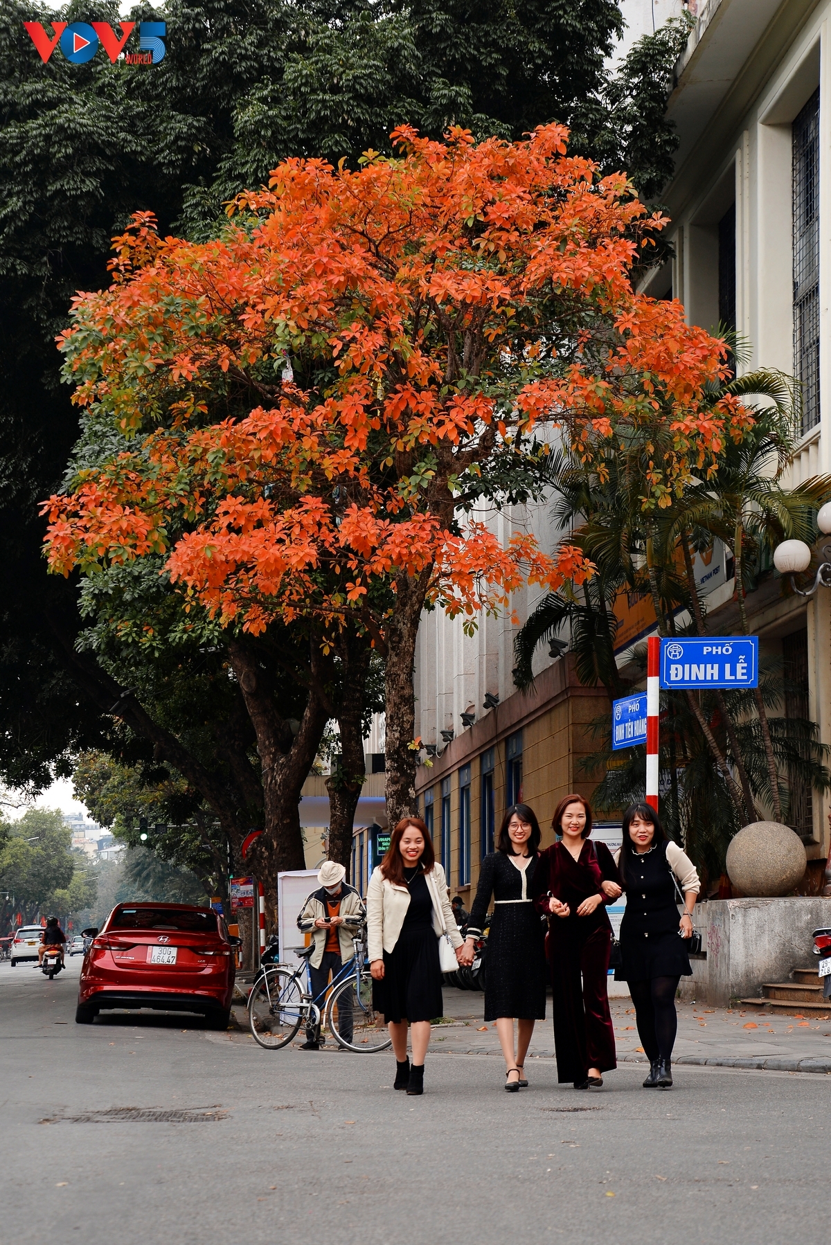 | Góc đường Đinh Lễ - Đinh Tiên Hoàng cũng là môt trong những địa điểm check-in ưa thích của các bạn trẻ trong mùa cây thay lá này. |
