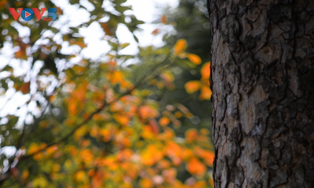| Thân xà cừ xù xì cũng như tươi mới hơn bên cạnh những tầng lá đổi màu rực rỡ |