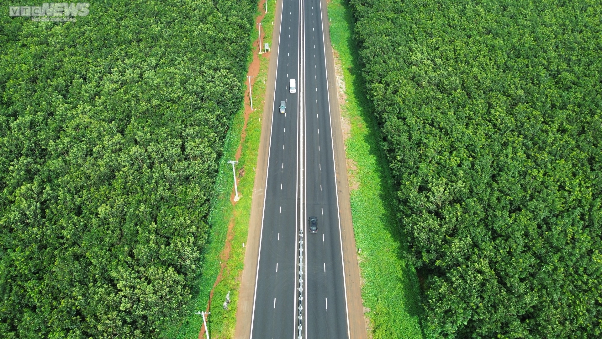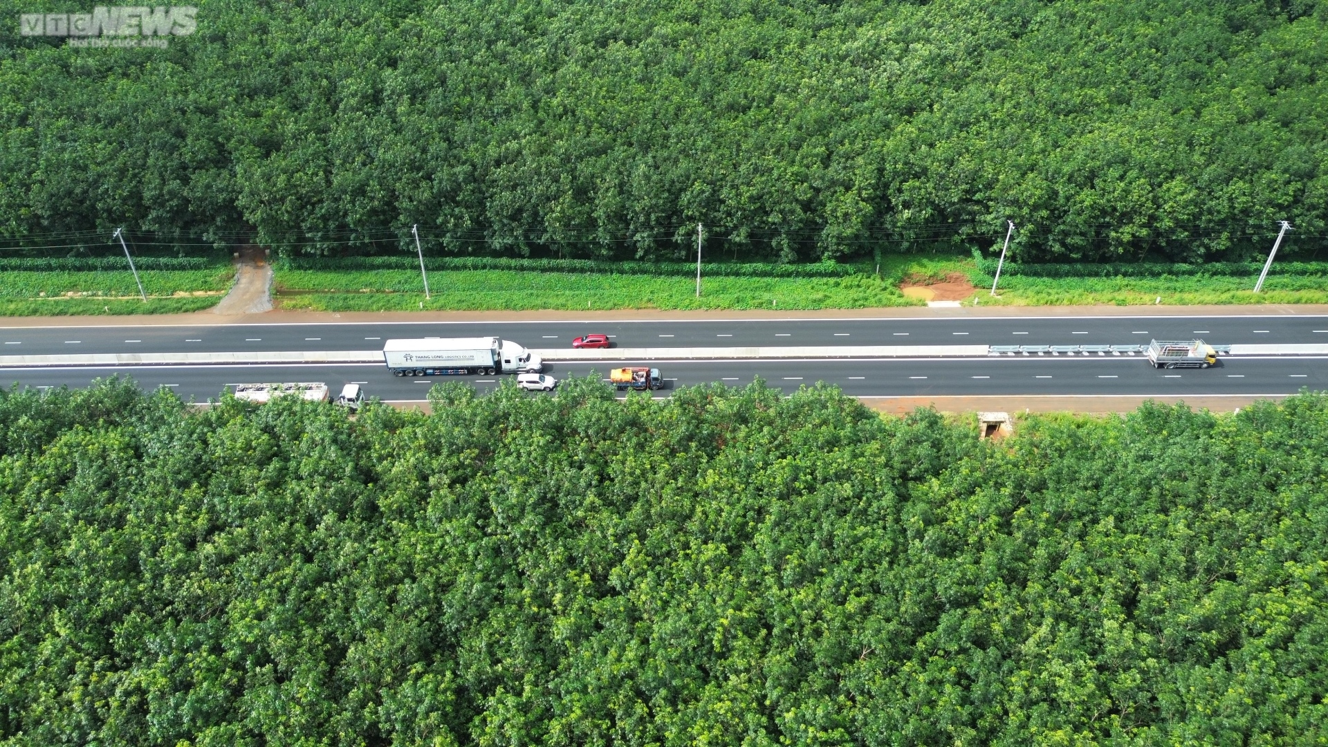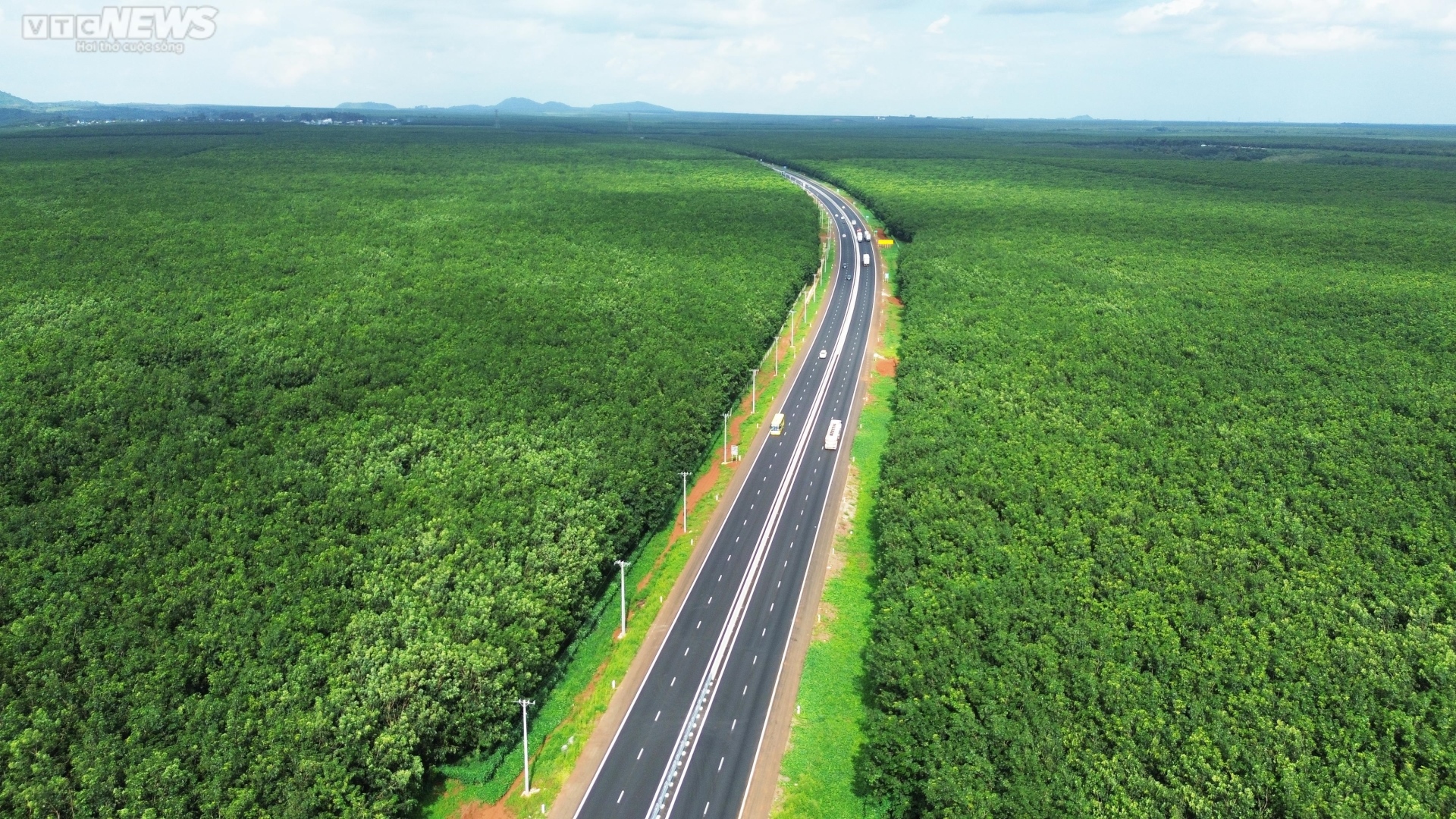 Ghi nhận của PV VTC News ngày 20/7 đoạn qua huyện Cẩm Mỹ (Đồng Nai), sau mùa thay lá, những rừng cao su bạt ngàn nay đuợc phủ màu xanh mướt, ôm trọn tuyến cao tốc. |