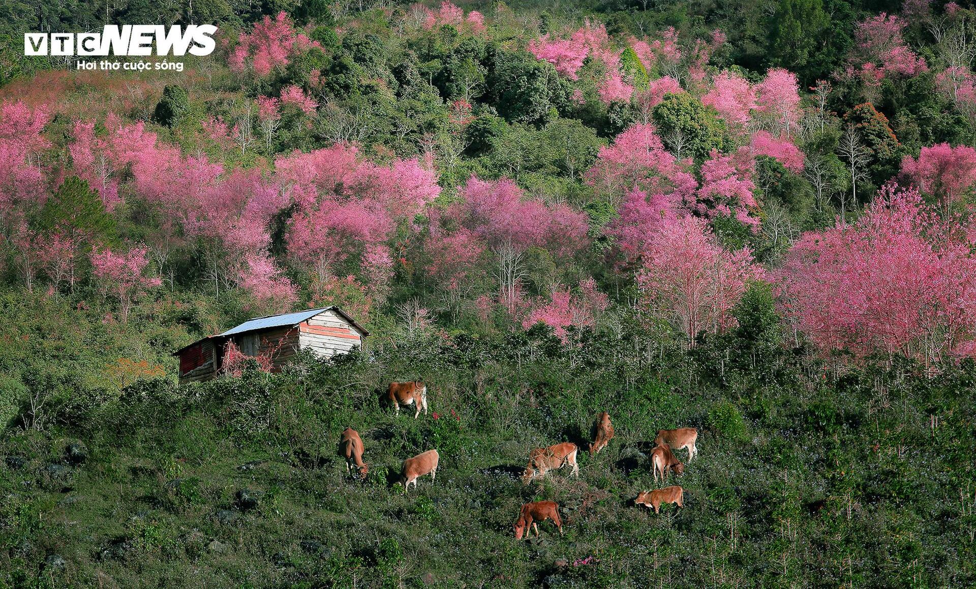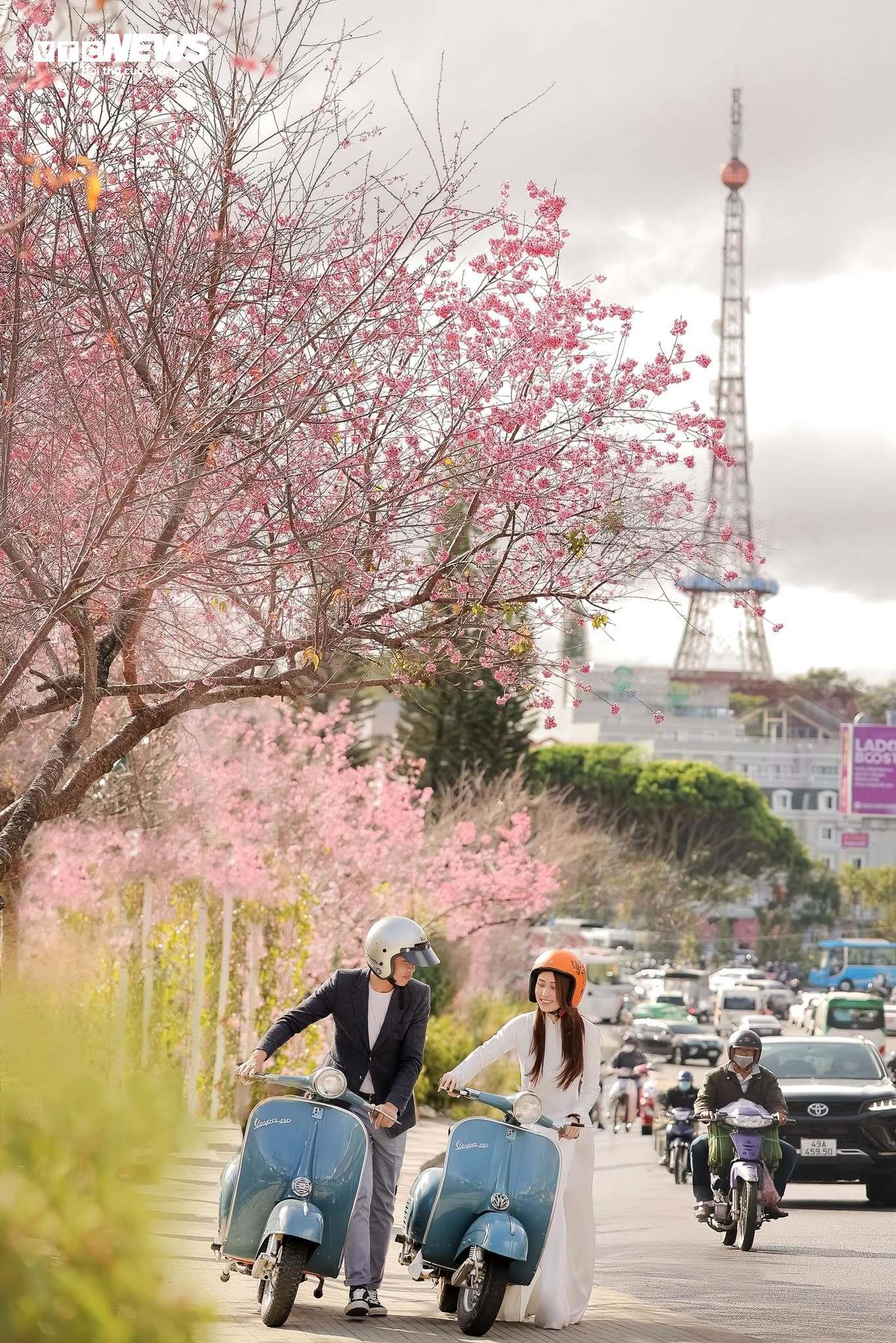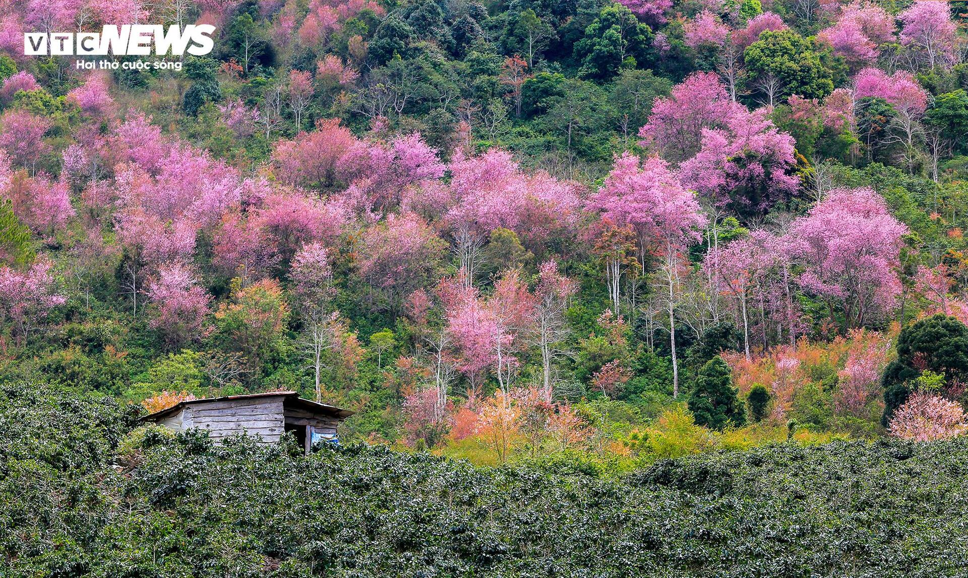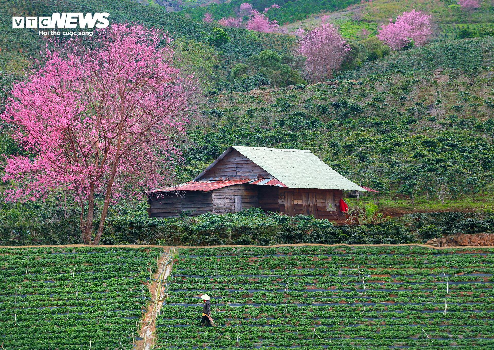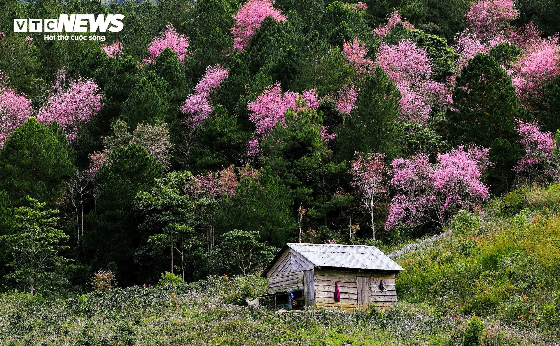 | Không chỉ tại núi rừng Langbiang, nhiều cung đường khác tại Lâm Đồng cũng được nhuộm hồng bởi mai anh đào. |