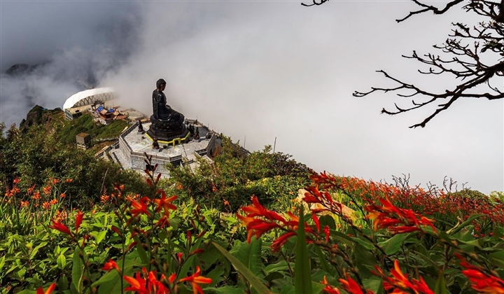 Ở độ cao 3000m, bao nhiêu năm qua, tưởng chừng chỉ có giống trúc lùn và hoa đỗ quyên là có thể sống được với gió quật và sương mù giăng giăng khắp lối nơi đỉnh thiêng Fansipan. Vậy mà những người làm du lịch nơi đây đã mang hoa về núi, để giờ đây, những vạt đồi được nhuộm bừng sức sống bởi sắc cam đỏ của hoa dơn lúa.