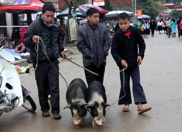 | Chợ bò, một góc độc đáo của chợ phiên Mèo Vạc, nơi mọi người mang “ngân hàng” của nhà mình đến trao đổi. |