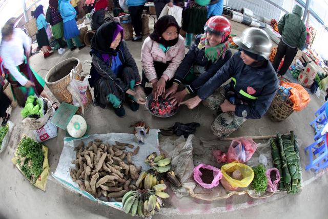 Phiên chợ ngày cuối năm thường diễn ra trong cái rét tê buốt. Cái lạnh thấu xương toát ra từ trời, từ đá, từ cả những manh áo mong manh. Dẫu vậy đến chợ người ta vẫn thấy ấm cúng lạ thường, ấm bởi những sắc màu thổ cẩm rạo rực cả đất trời, ấm bởi những bếp lửa mà bất kỳ ai cũng có thể ghé vào sưởi cùng, bởi những chén rượu ngô nấu men lá đặc sánh mà chỉ đi nếm một vòng cũng đủ say… cả tuần, rồi những nụ cười hơi ngượng nghịu, rụt rè mà hồn hậu. Người ta mang đến chợ đủ mọi thứ trên rừng, trên nương: mớ hạt, mớ thuốc, mớ gừng gió cay nồng. Cả những túm rau, củ cằn cằn xâu xấu, nhưng với những du khách là “vớ được”… đặc sản đấy. Những thứ không thể mua được ở bất kỳ siêu thị nào. Những thứ rau, củ, quả lớn lên trên đá núi, ngậm sương giá bao ngày, không đẹp nếu nhìn nhưng thật tuyệt khi ăn, ngọt, ngon, cái cảm giác “thật miệng” lạ lắm. Được thưởng thức những thứ ấy cũng là một cách cảm nhận về vùng cao nguyên đá nhọc nhằn, chất phác mà cái đẹp luôn ẩn vào trong.