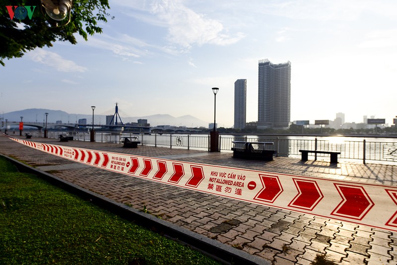 Như nhiều nơi, không gian công cộng 2 bên sông Hàn được chính quyền giăng dây cảnh báo cấm tụ tập.