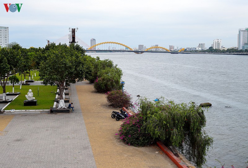 Cảnh vắng lặng ở Công viên trên đường Trần Hưng Dạo- bên bờ Đông sông Hàn giữa dịch Covid-19.