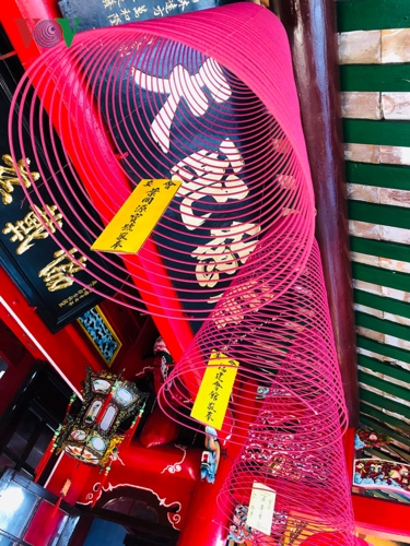 Ở Hội An, chỗ nào bạn cũng có thể lưu giữ khoảnh khắc tuyệt vời. Trong ảnh: Những vòng hương đại thắp suốt dịp Tết Kỷ Hợi tại Hội quán Phúc Kiến. |